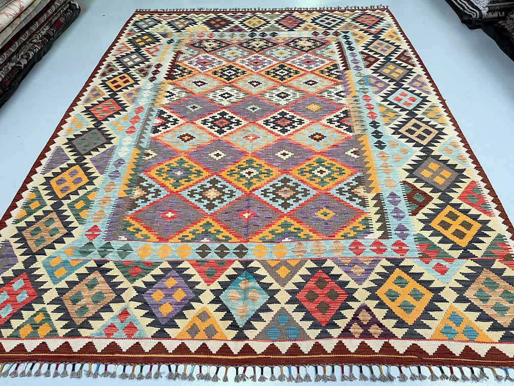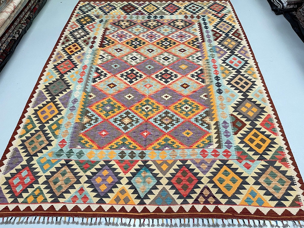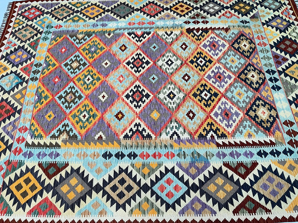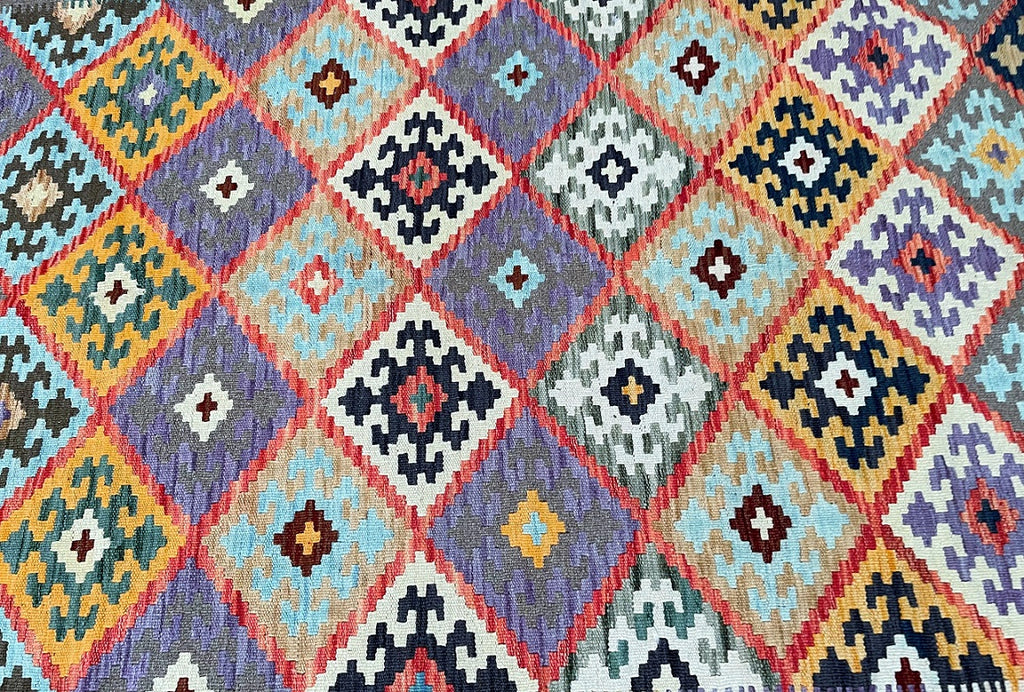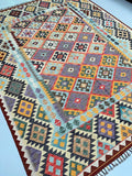 Decorative Full Room Size Hand Woven Aryana Kilim Rug. Above All It Has A Pure Hand Spun Wool Pile On Wool Base. Vibrant Tone Dyed Using Vegetable Roots.