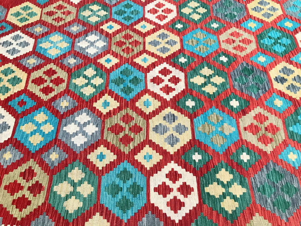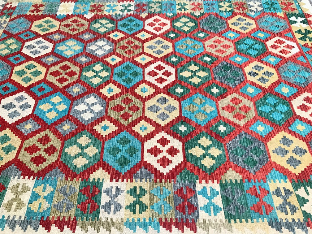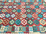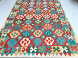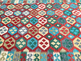 Full Room Size Hand Woven Boho Design Afghan Aryana Kilim Rug. Above All It Has A Pure Hand Spun Wool Pile On Wool Base. Vibrant Tones Dyed Using Vegetable Roots.