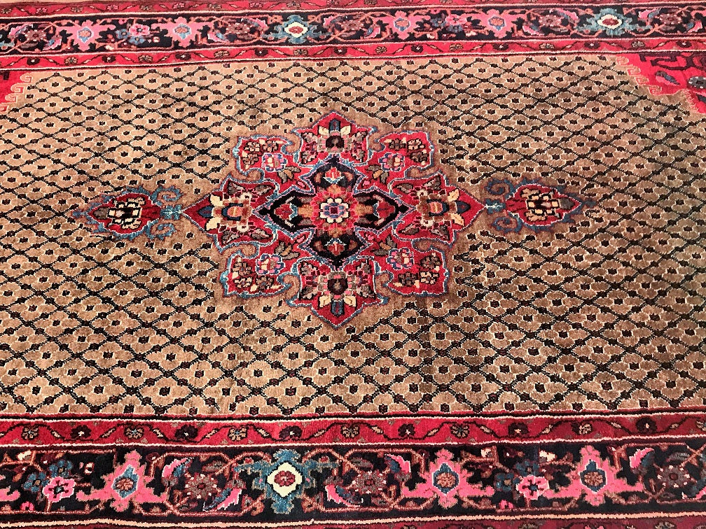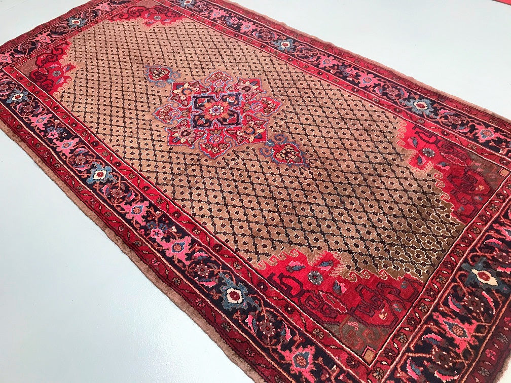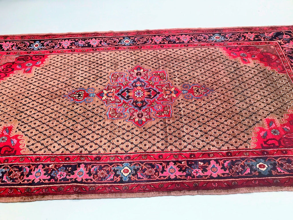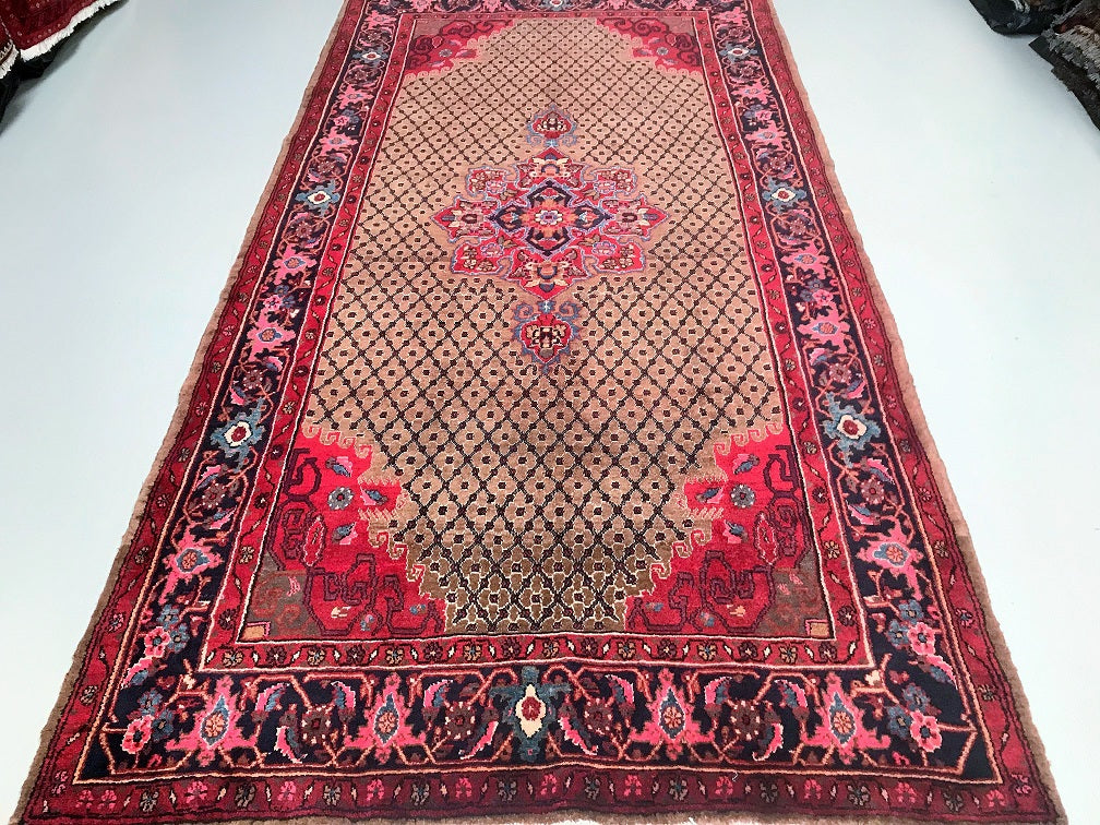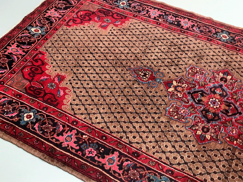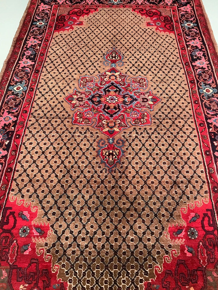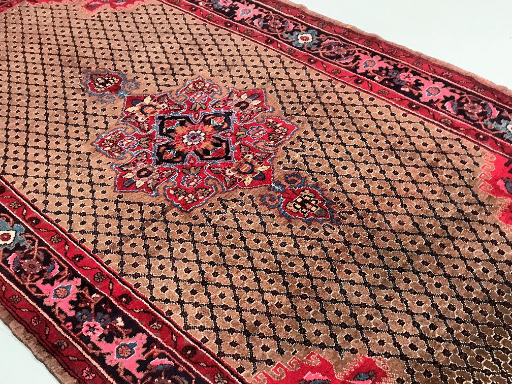 Rare Full Room Size Hand Knotted Vintage Kurdish Persian Koliai Rug. Above All It Is Hard To Find Handmade Rugs From Kurdish Region. Pure Hand Spun Wool Pile On Cotton Base. Brown Tone With Touch Of Indigo Blue, Red and Pink Dyed Using Traditional Methods.