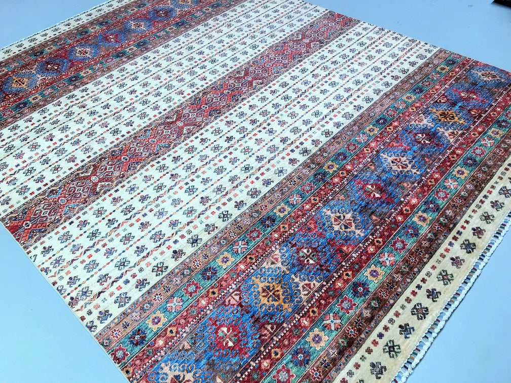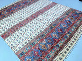 Stunning Full Room Size Shawl Design Super Kazak Afghan Rug. Above All It Is Pure Hand Spun Wool Pile On Cotton Base. Beige And Blue Tone Dyed Using Traditional Methods (Vegetable Dyes). Last of True Woven Nomadic Art.
