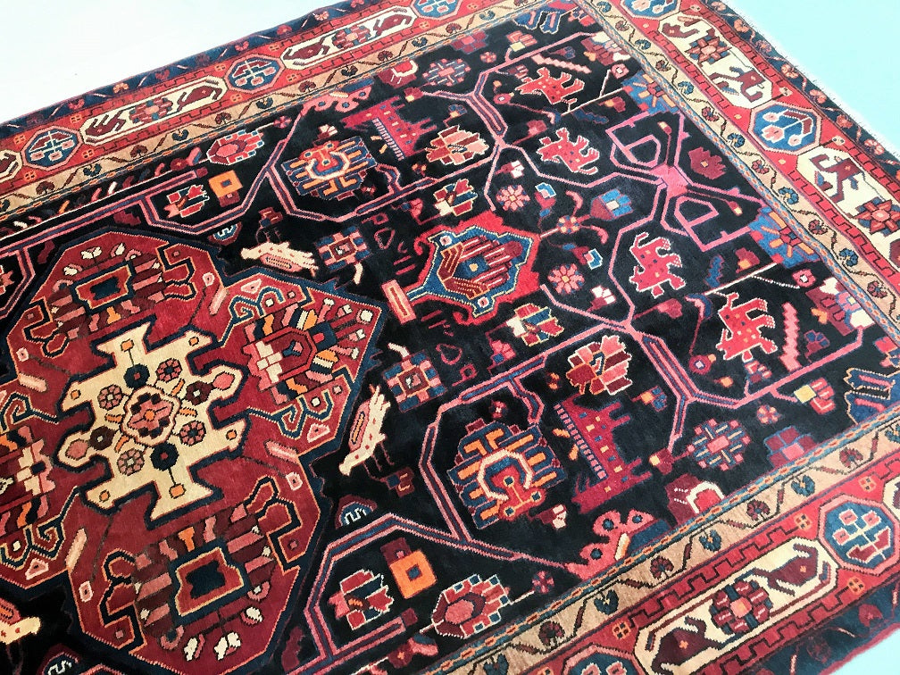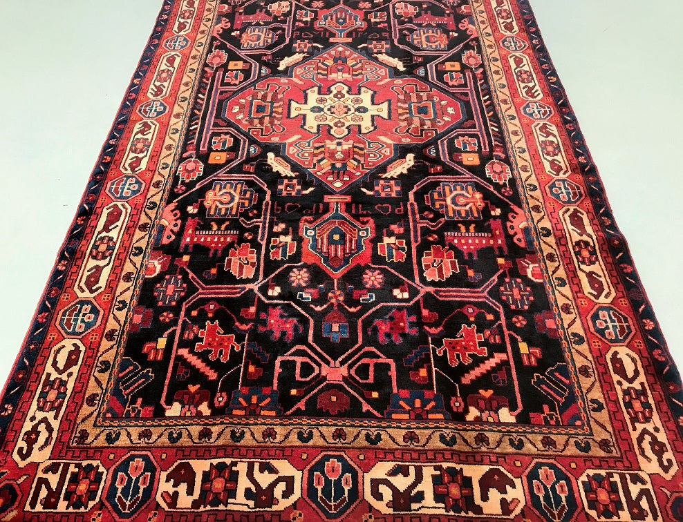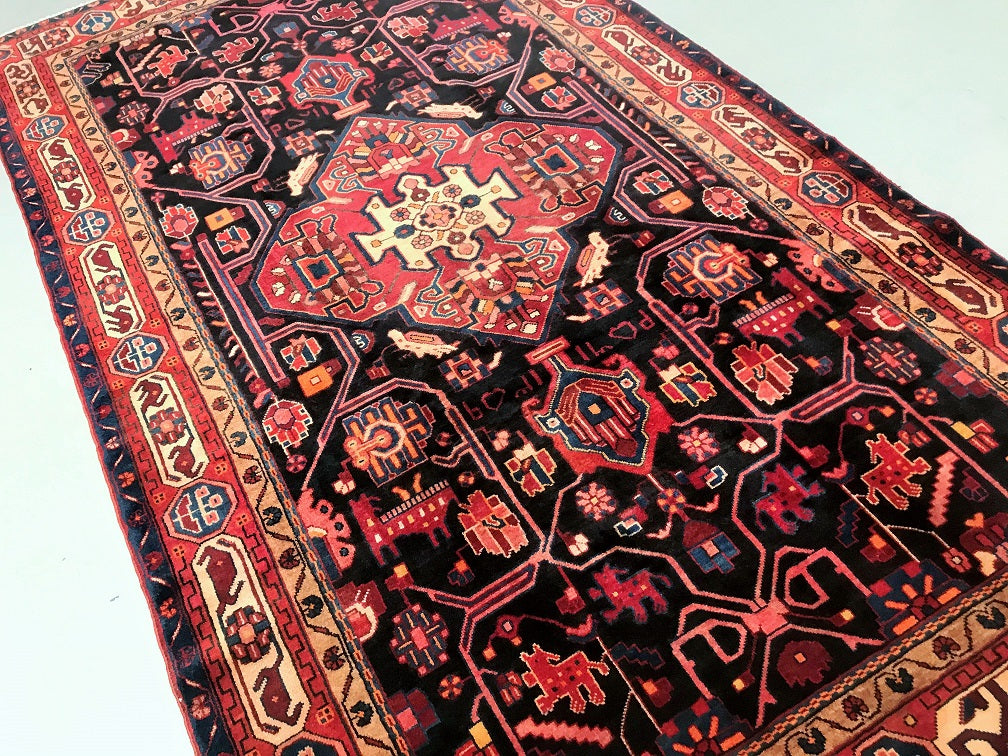 Full Room Size Hand Knotted Tribal Persian Tuserkan Rug. Above All It Is Hard To Find This Quality Original Handmade Tribal Pieces. Pure Hand Spun Wool Pile On Cotton Base. Deep Indigo Blue/Black Background Dyed Using Traditional Methods.