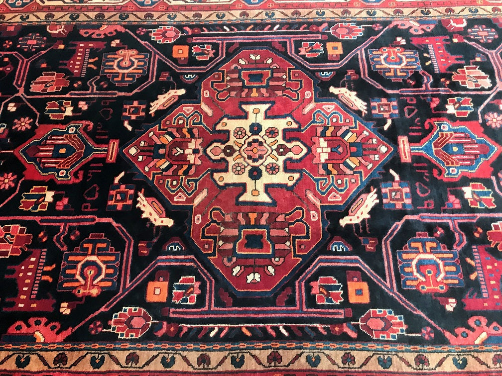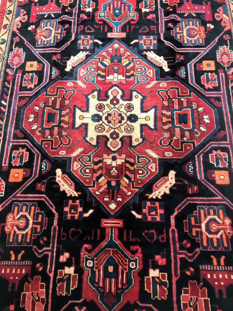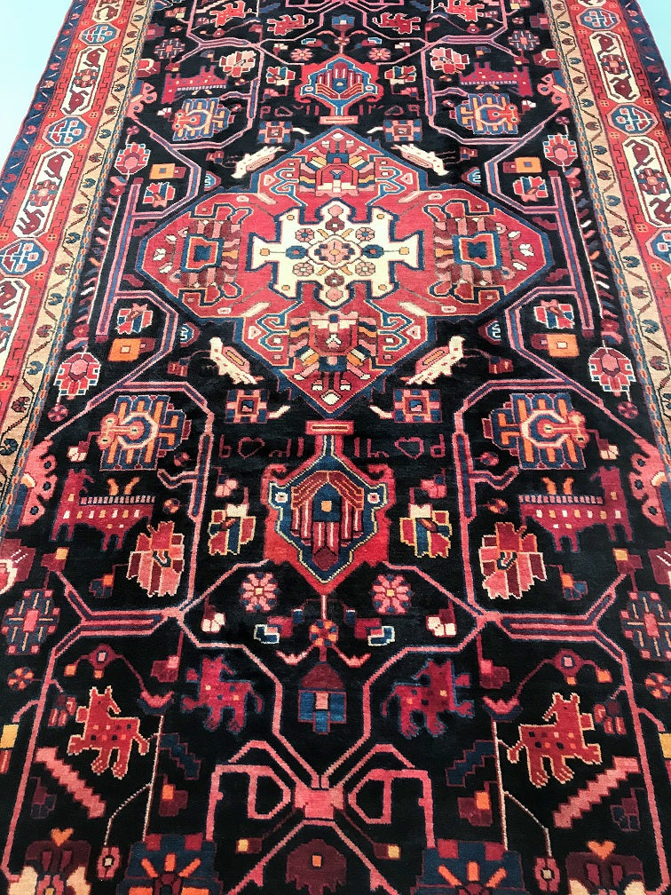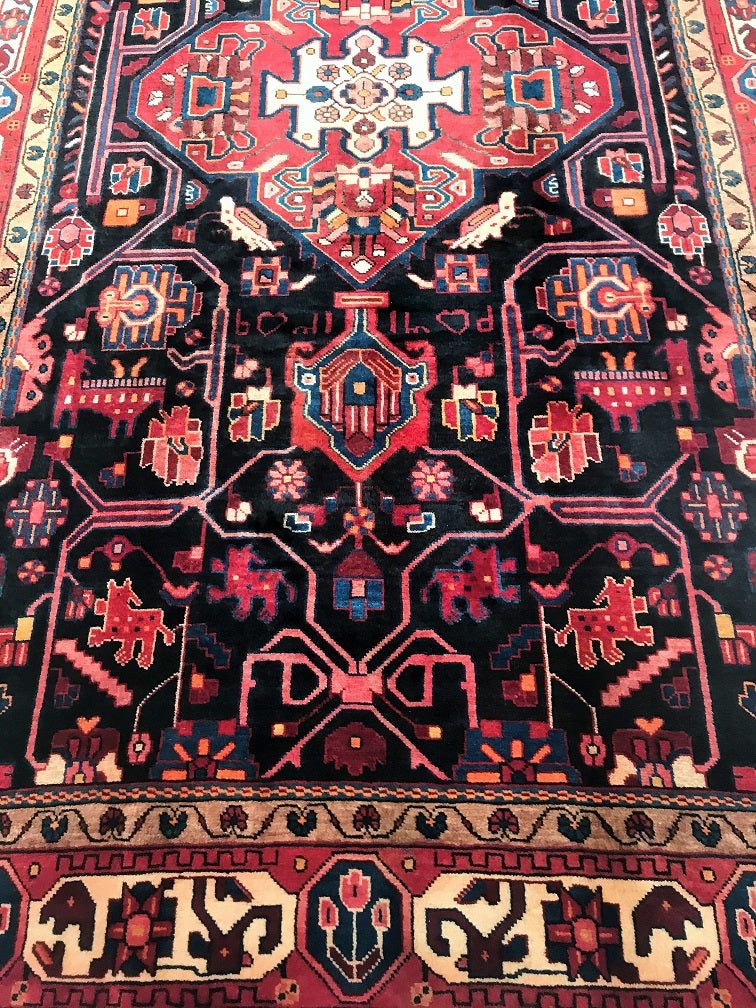 Unique Broken Branches Central Medallion Design with Animal Motives (Signed). The Design Comes from Imagination of the Weaver (Not Woven from a Drawing) and it’s one off Tribal Art Work.