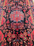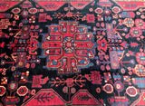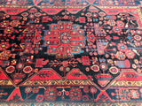Gorgeous Full Room Size Hand Knotted Tribal Persian Nahavand Rug. It Almost Looks Like A Painting On The Floor. It Has A Pure Hand Spun Wool Pile On Cotton Base. Deep Indigo Blue Tone Dyed Using Traditional Methods.