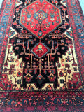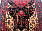 Gorgeous Full Room Size Hand Knotted Village Tuserkan Rug. Above All It Is Hard To Find Original Handmade Tribal Pieces. Hand Spun Wool Pile On Cotton Base. It Also Has A Deep Indigo Blue Tone Dyed Using Traditional Methods.
