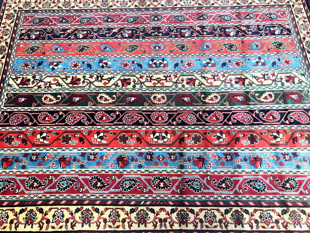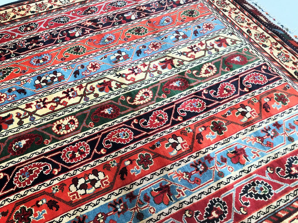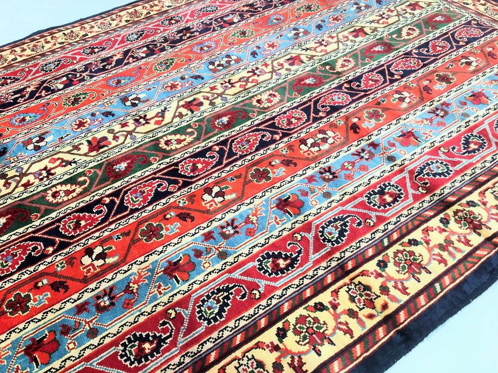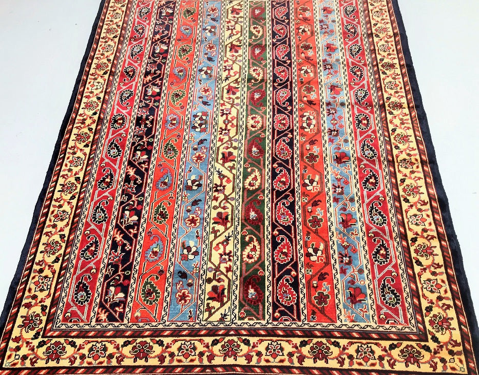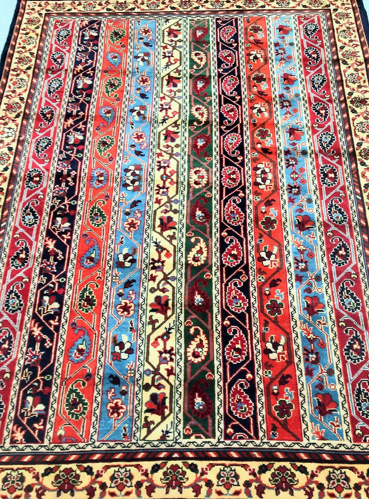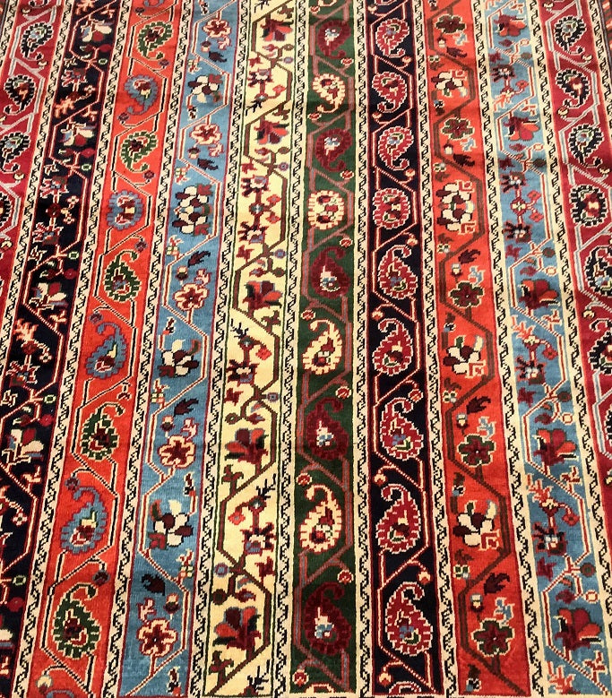 Superb Coffee Table Size Shawl Design Hand Knotted Roshnai Rug. Above All It Is Pure Hand Spun Merino Wool Pile On Wool Base. It Also Has Multi-Color Tone Dyed Using Traditional Methods.