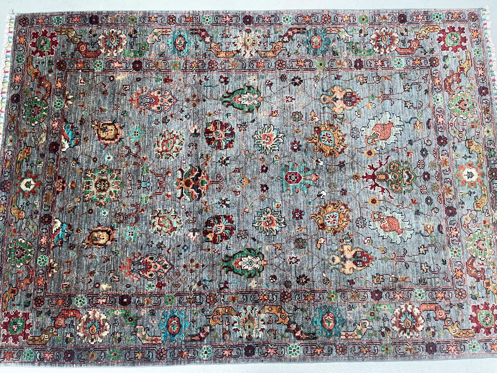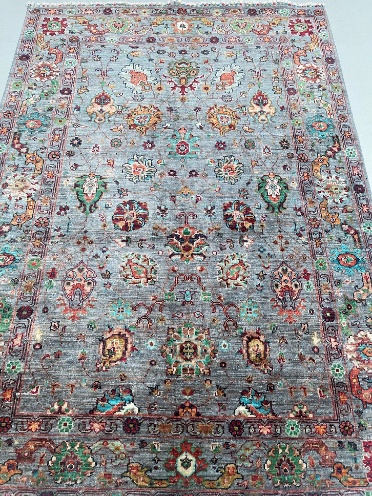 Coffee Table Size Genuine Hand Knotted Sultani Afghan Chobi Rug. Above All It Has A Lamb’s Wool Pile On Cotton Base. Blue Grey, Beige, Red, Gold, Orange And Turquoise Tone Dyed Using Traditional Methods (Vegetable Dyes). Last of True Woven Nomadic Art.