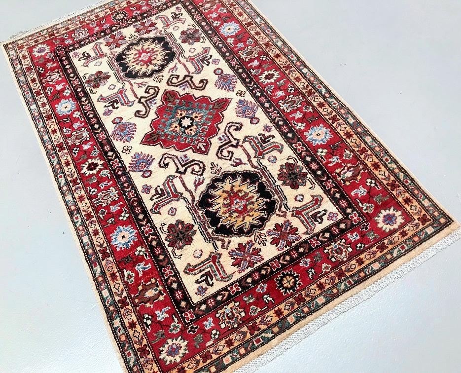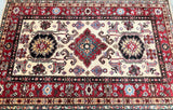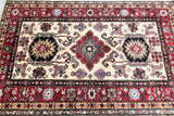 Decorative Handmade Afghan Super Kazak Rug. Above All It Is Pure Hand Spun Wool Pile On Cotton Base. Beige And Maroon Tone With Touch Of Black Dyed Using Traditional Methods (Vegetable Dyes). Last Of True Woven Tribal Art.