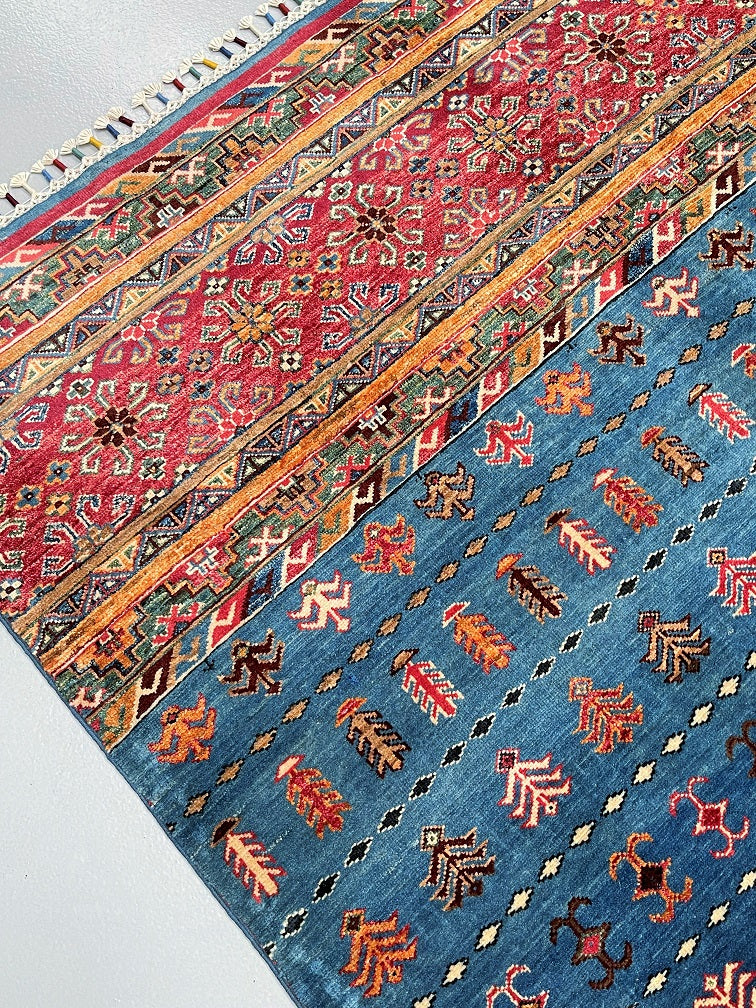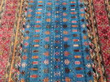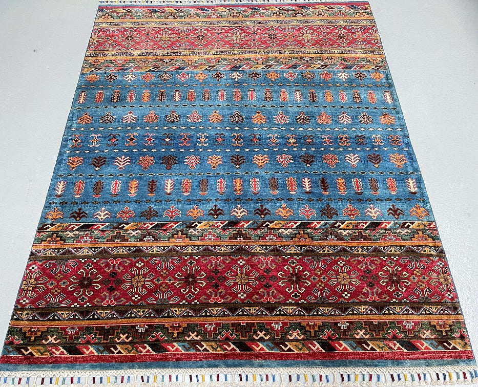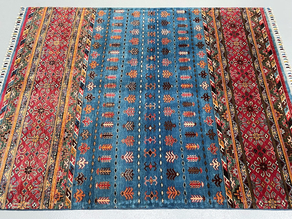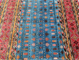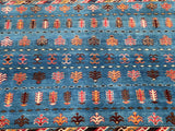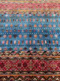 Unique Authentic Hand Knotted Afghan Super Kazak Rug. Above All It Is Pure Hand Spun Wool Pile On Cotton Base. Blue, Maroon, Brown And Orange Tone Dyed Using Traditional Methods (Vegetable Dyes). Last of True Woven Nomadic Art.
