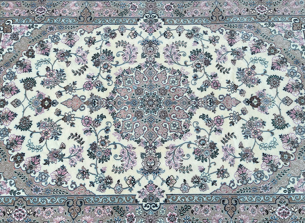 Superb Room Size Authentic Handmade Persian Nain Rug. Above All It Is Hard To Get This Quality Original Handmade Rug From This Town. It Also Has Lamb’s Wool Pile on Cotton Base. Beige, Blue, Grey, Light Brown, Green And Pink Tones Dyed Using Traditional Methods. High Quality Piece from City Of Nain.