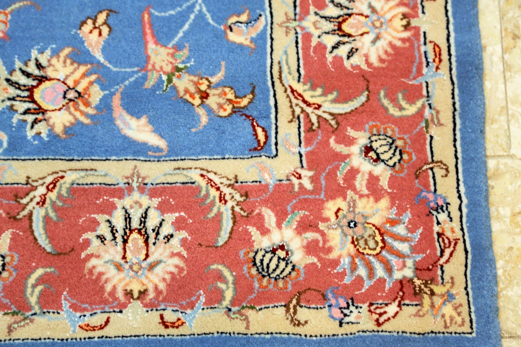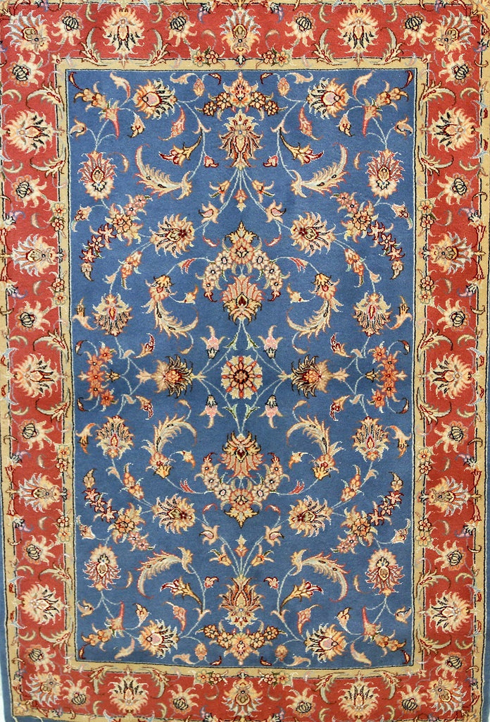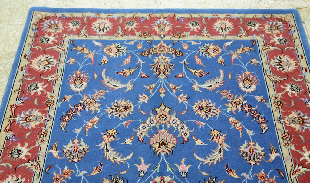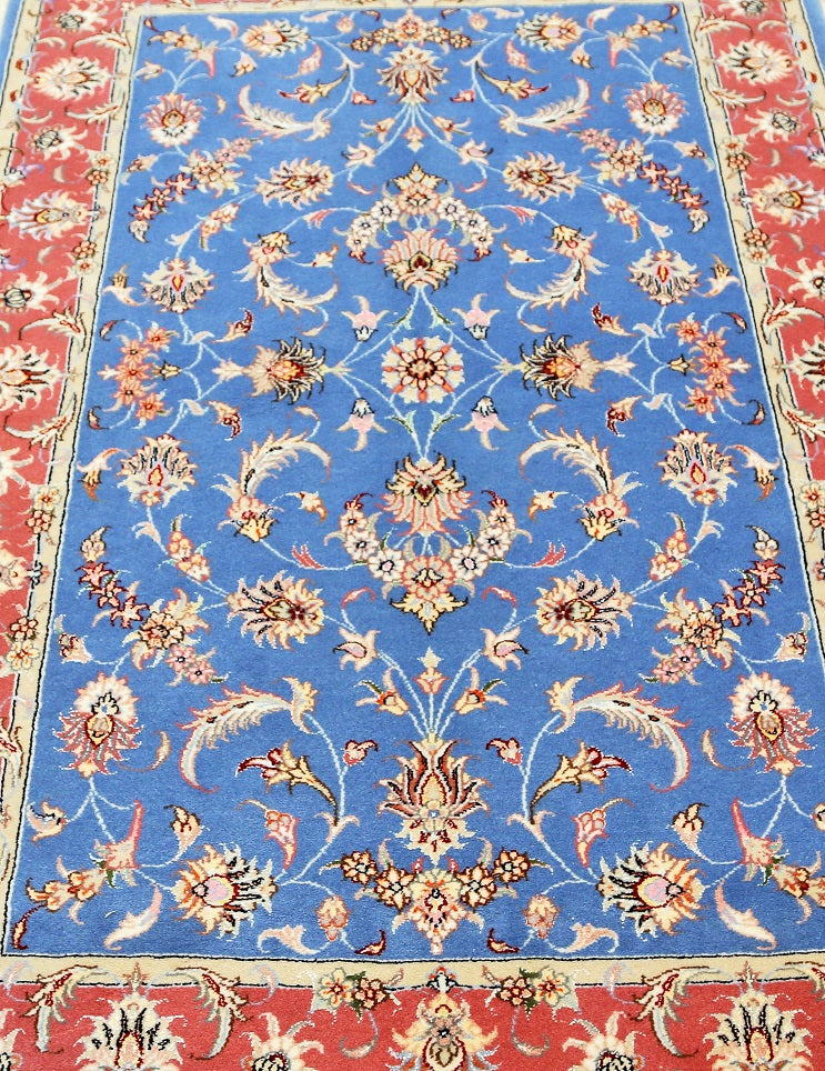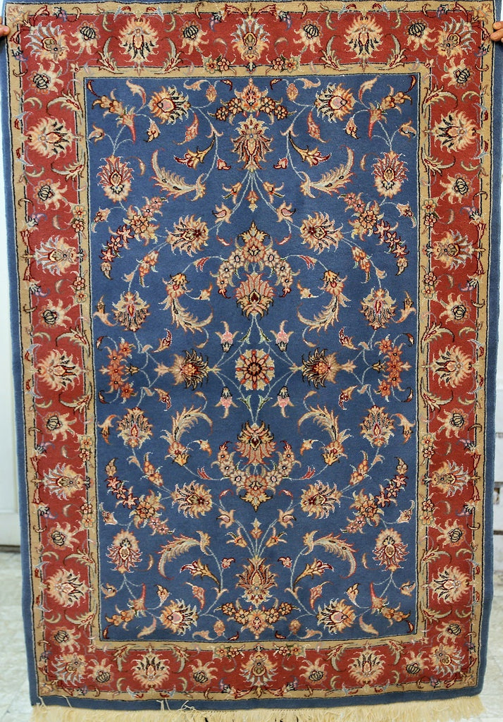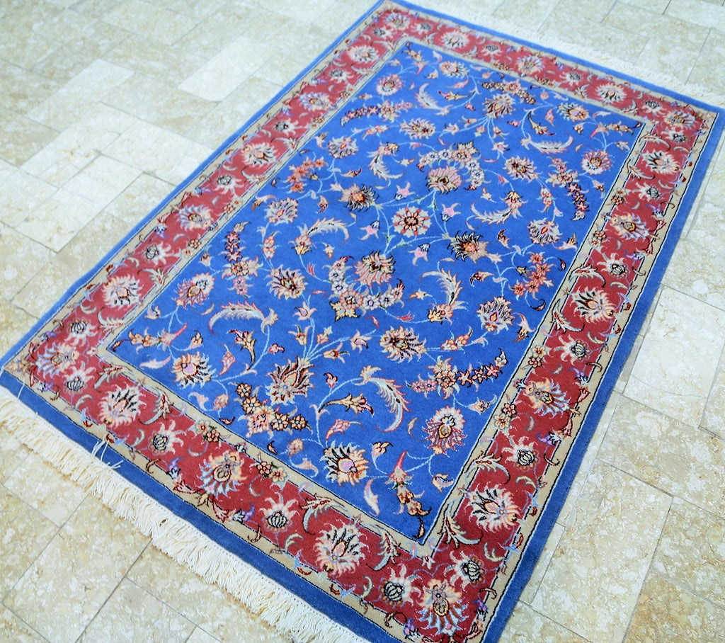 Superb Authentic Hand Knotted Persian Kashmar Rug. Above All It Has A Lamb’s Wool And Silk Touch Pile On Cotton Base. It Also Has A French Blue Tone. Dyed Using Traditional Methods.