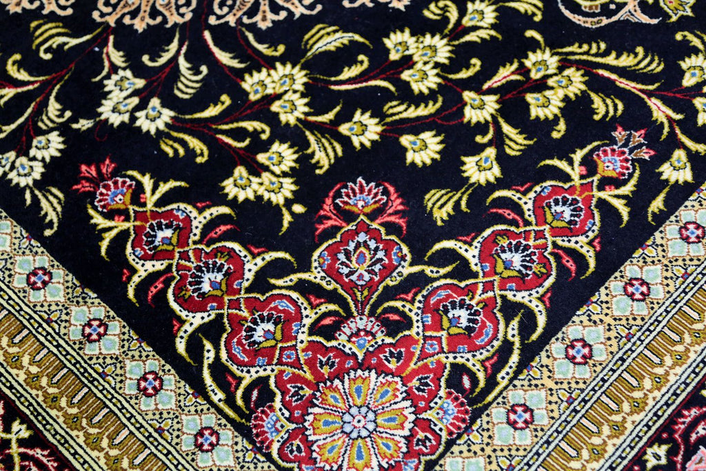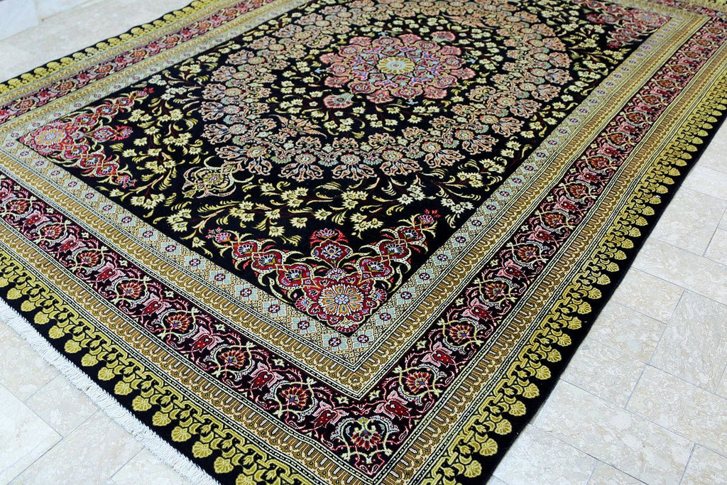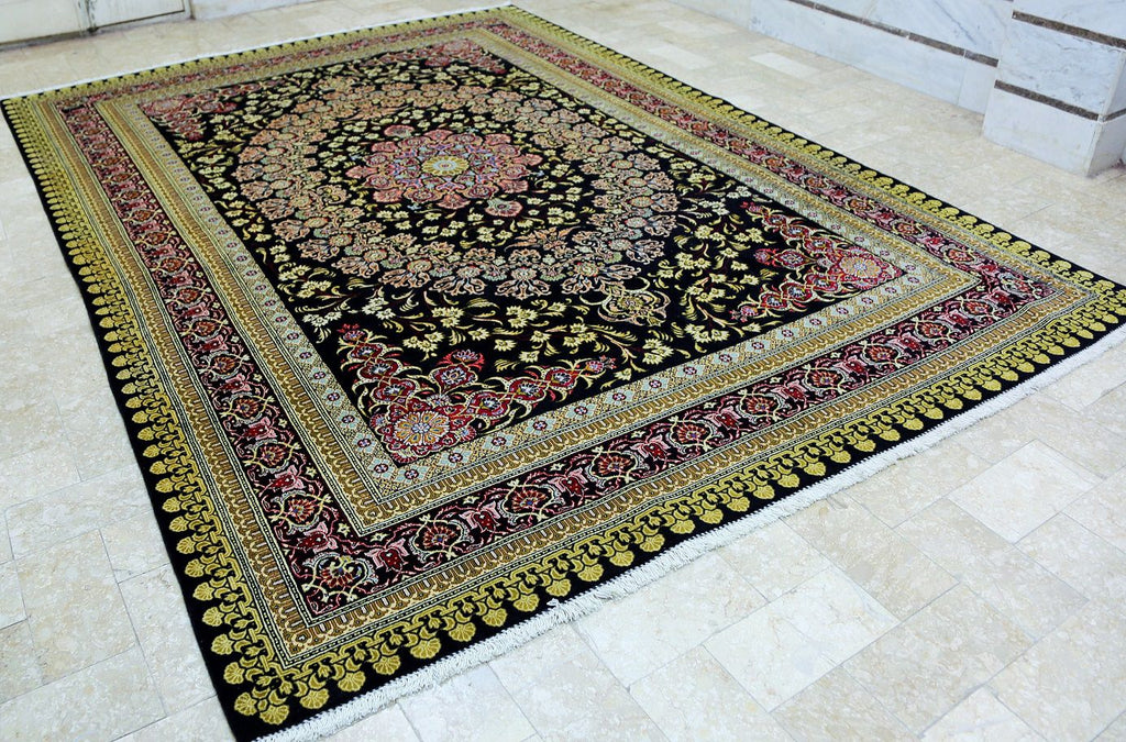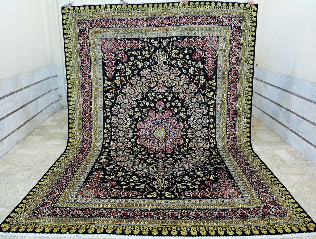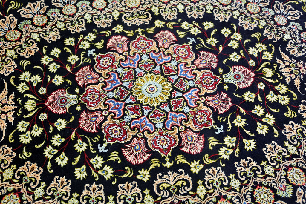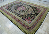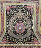 Top Quality Full Room Size Authentic Persian Carpet. Above All It Has A Pure Lamb’s Wool Pile On Cotton Base, Stunning Indigo Blue, Red, Pink And Gold Tones Dyed Using Traditional Methods, Fine Quality Piece, From City Of Kashan.