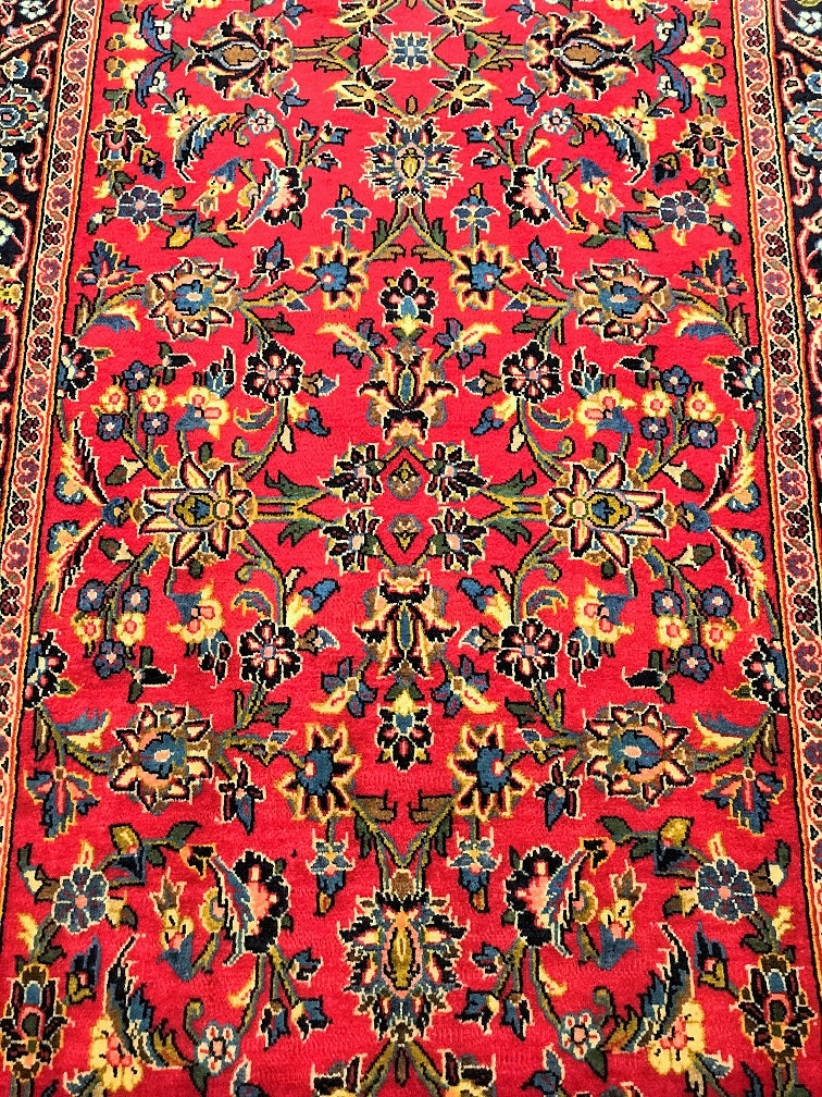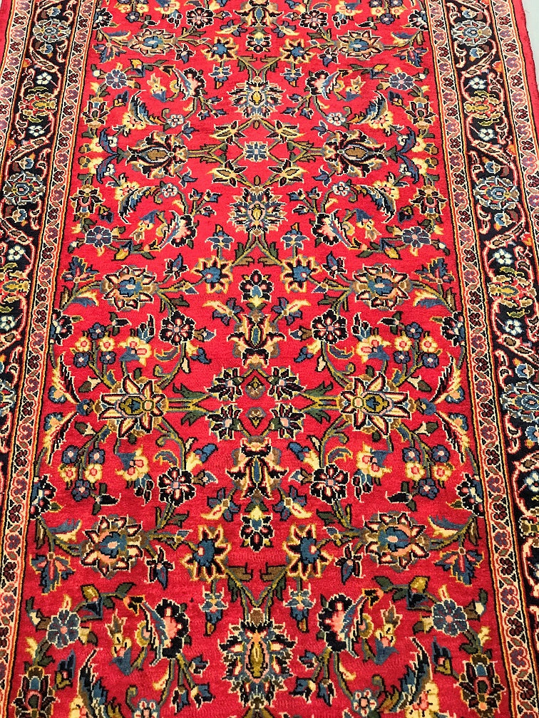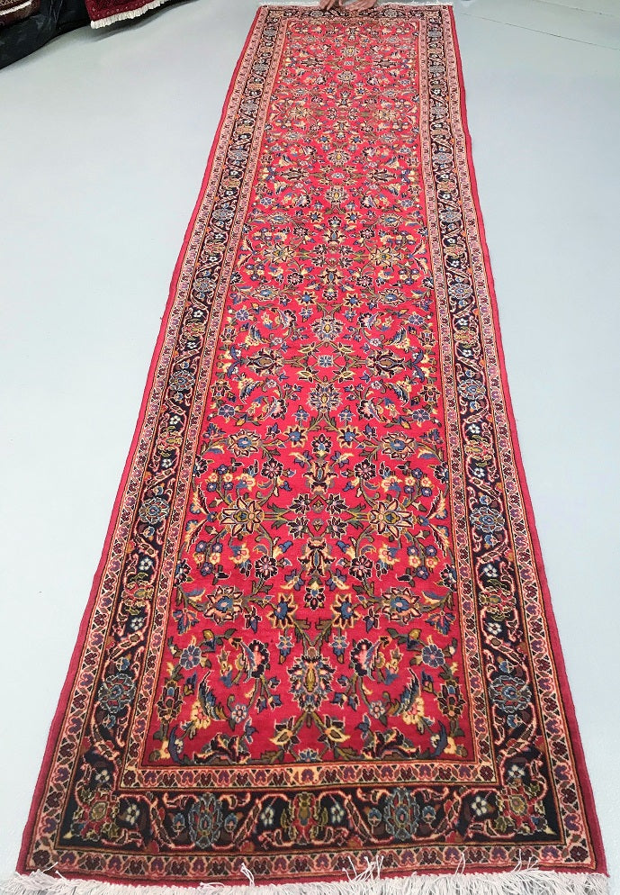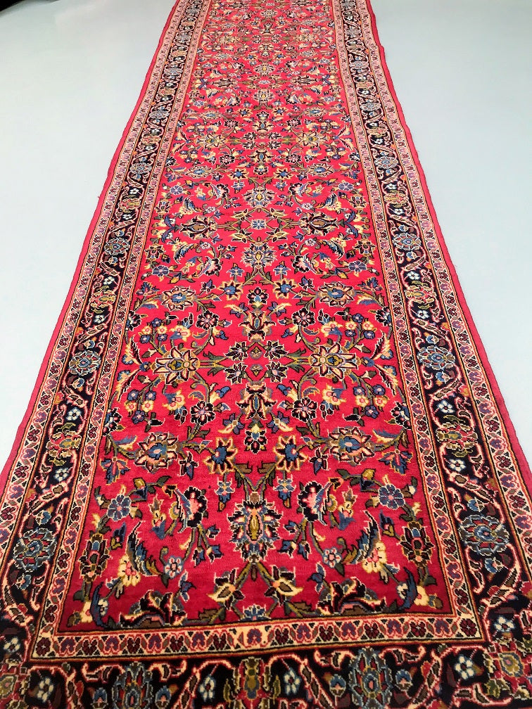Authentic Handmade Traditional Persian Kashan Hall Runner. Above All Hall Runners From This City Are Renowned For Their Durability. It Also Has A Pure Lamb’s Wool Pile On Cotton Base. Red, Indigo Blue, Beige And Green Tone Dyed Using Traditional Methods.