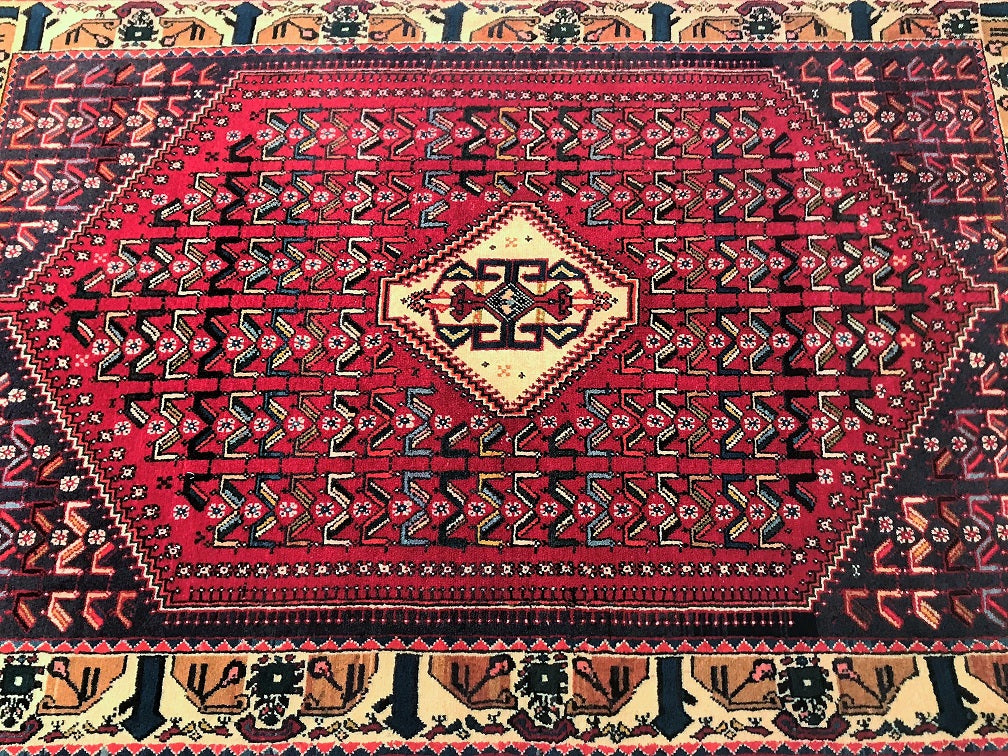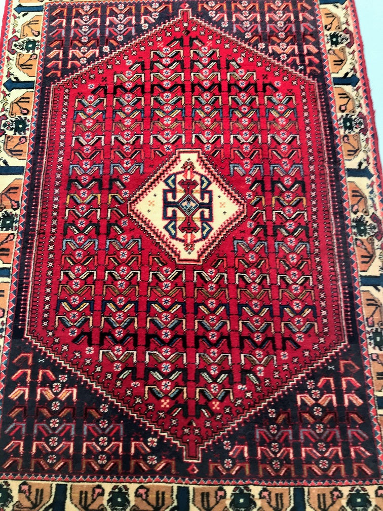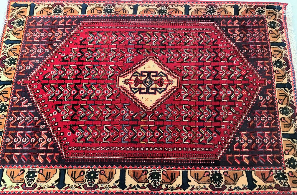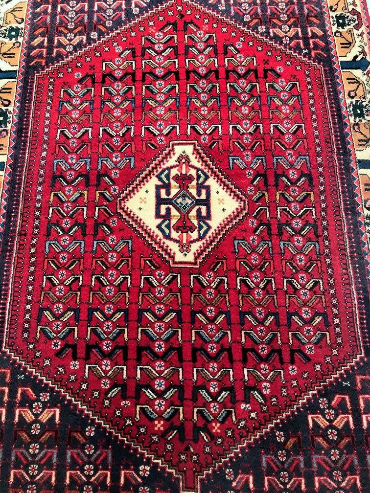 Collectible Coffee Table Size Hand Knotted Tribal Persian Abadeh Rug. Above All It Is Hard To Find This Quality Hand Made From This Tribe. Pure Hand Spun Wool Pile On Fine Cotton Base. Rich Red Tone Dyed Using Traditional Methods.
