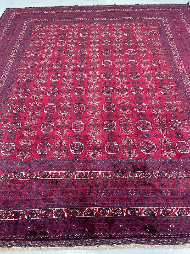 Certified Hand Knotted Tribal Afghan Rug 332x295cm
