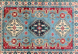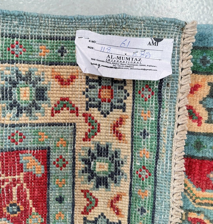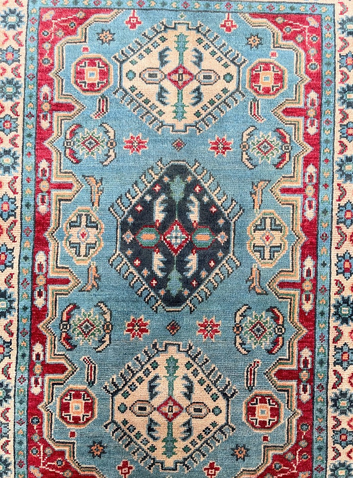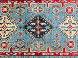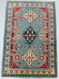 Free Shipping Australia Wide Offered! Certified Handmade Afghan Rug 118x82cm Decorative Coffee Table Size Hand Knotted Afghan Kazak Rug. Above All It Is Pure Hand Spun Wool Pile On Cotton Base. Aqua Marine, Green, Beige, Blue And Red Tones Dyed Us...