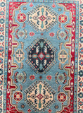 Decorative Coffee Table Size Hand Knotted Afghan Kazak Rug. Above All It Is Pure Hand Spun Wool Pile On Cotton Base. Aqua Marine, Green, Beige, Blue And Red Tones Dyed Using Traditional Methods (Vegetable Dyes). Last of True Woven Tribal Art.