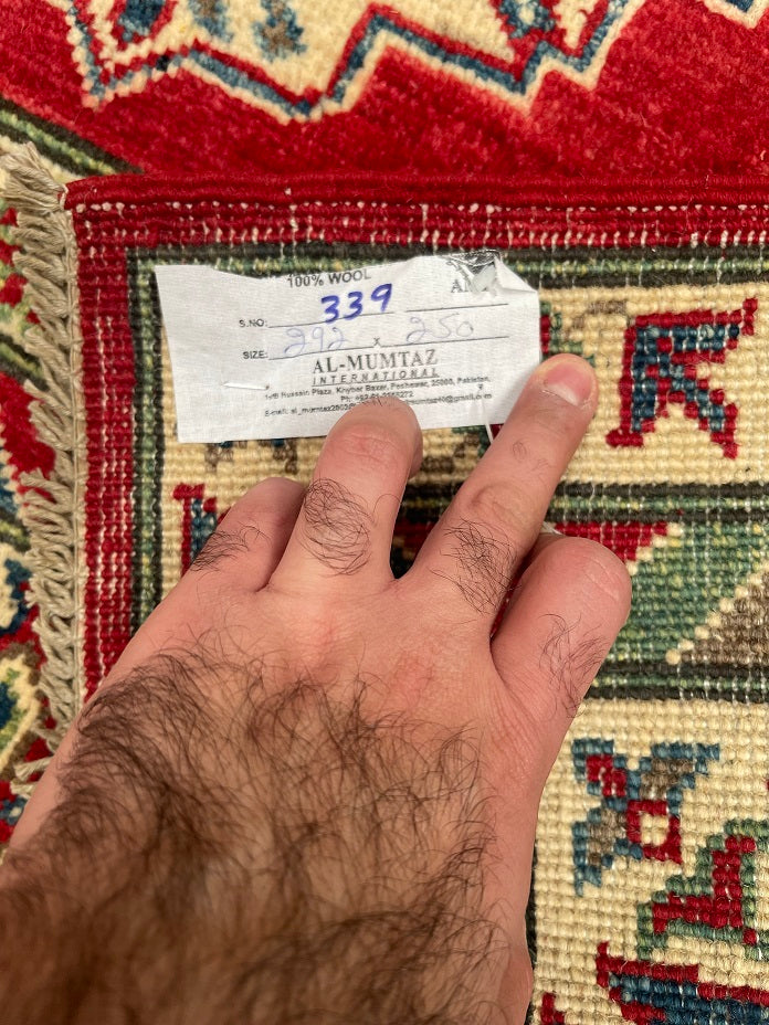 Certified Handmade Afghan Kazak Rug 292x250cm