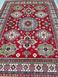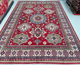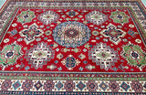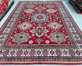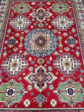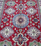 Massive Room Size Handmade Afghan Kazak Rug. Above All It Has A Pure Hand Spun Wool Pile On Cotton Base. Unique Red, Beige, Green and Blue Tone Dyed Using Traditional Methods (Vegetable Dyes). Last Of True Woven Tribal Art.
