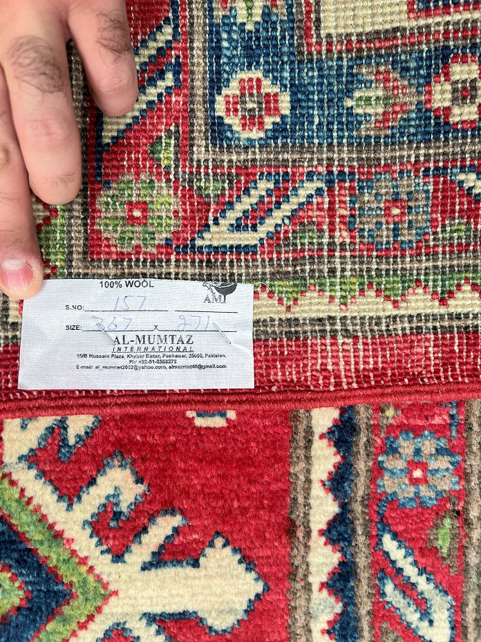 Certified Hand Knotted Afghan Kazak Rug 367x271cm