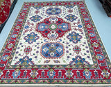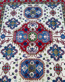 Large Room Size Hand Knotted Afghan Kazak Rug. Above All It Has a Pure Hand Spun Wool Pile On Cotton Base. Unique Beige, French Blue, Green and Red Tone Dyed Using Traditional Methods (Vegetable Dyes). Last of True Woven Tribal Art.