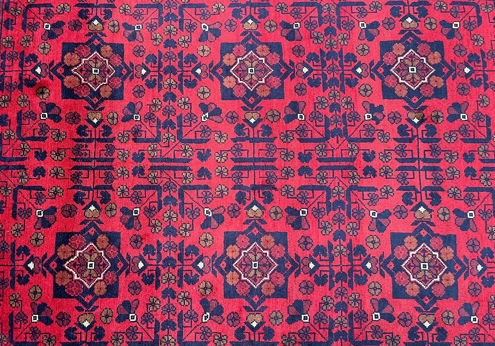 Durable Authentic Handmade Afghan Khal Rug. Above All It Has A Pure Hand Spun Wool Pile On Wool Base. It Also Has A Beautiful Maroon/Burnt Terracotta Tones Dyed Using Traditional Methods.