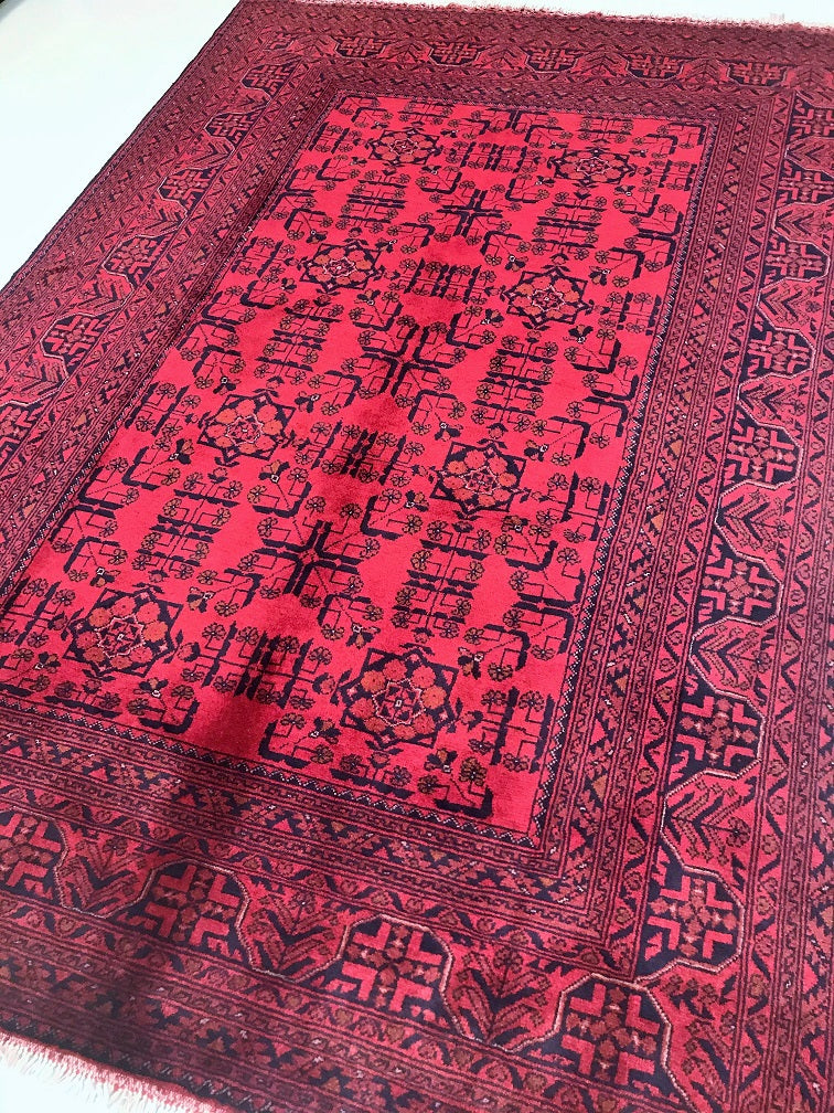 Certified Hand Knotted Afghan Rug 238x165cm