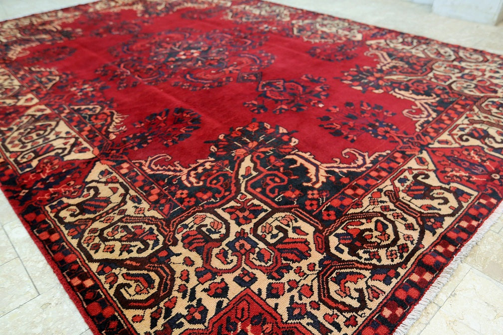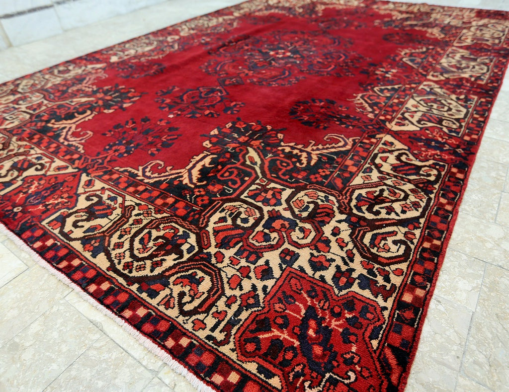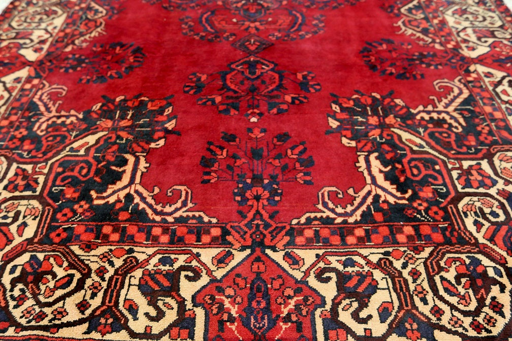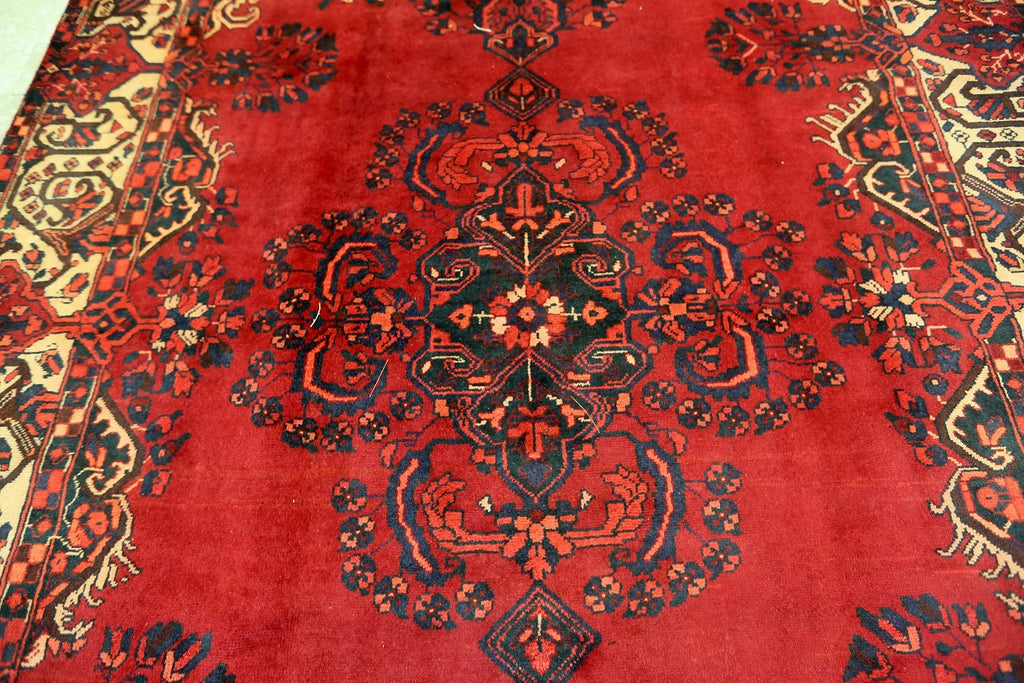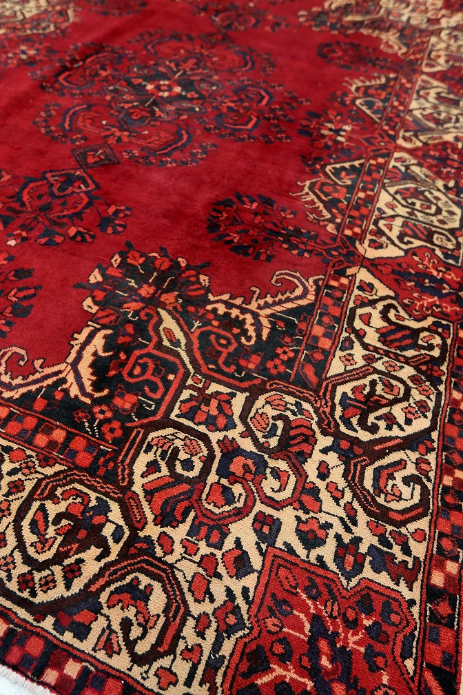 Full Room Size Hand Knotted Tribal Persian Ferdos Balouchi Rug. It Has A Pure Hand Spun Wool Pile On Cotton Base. Rich Red Tones Dyed Using Traditional Methods.