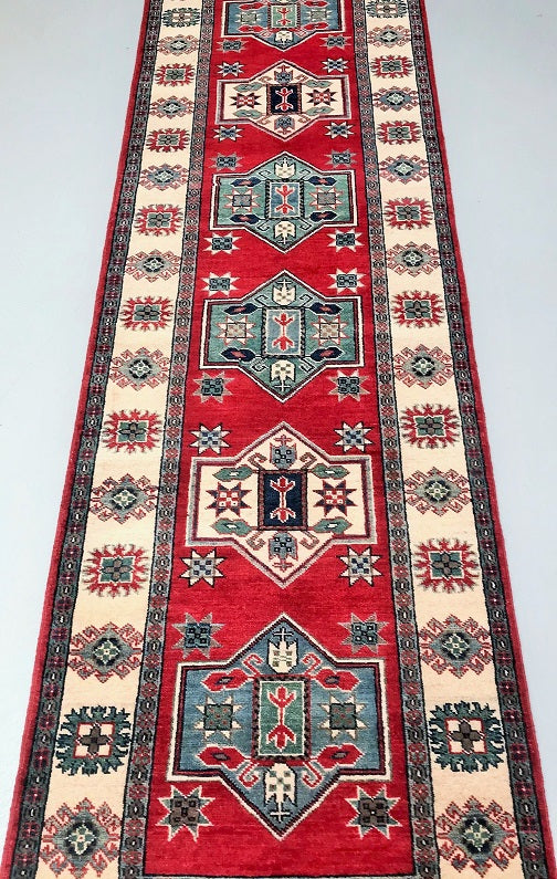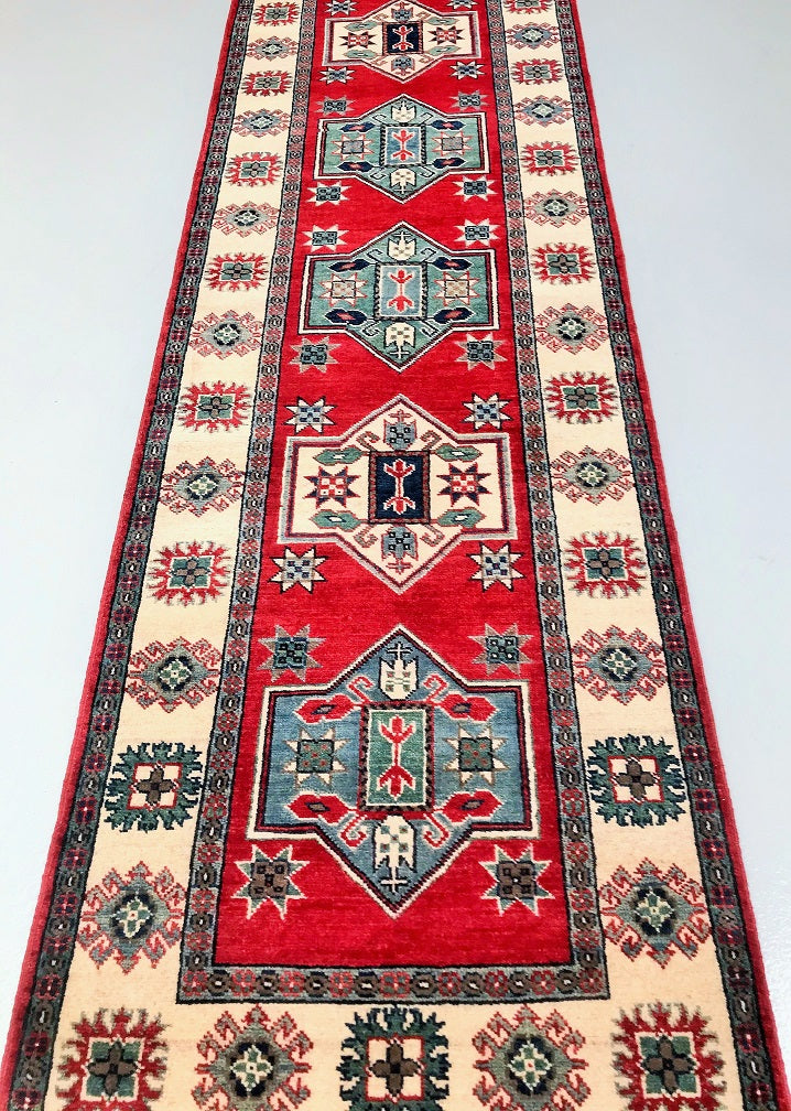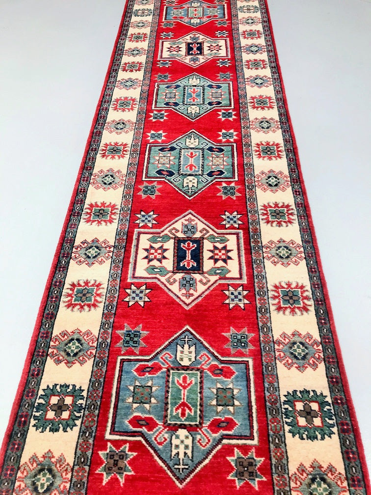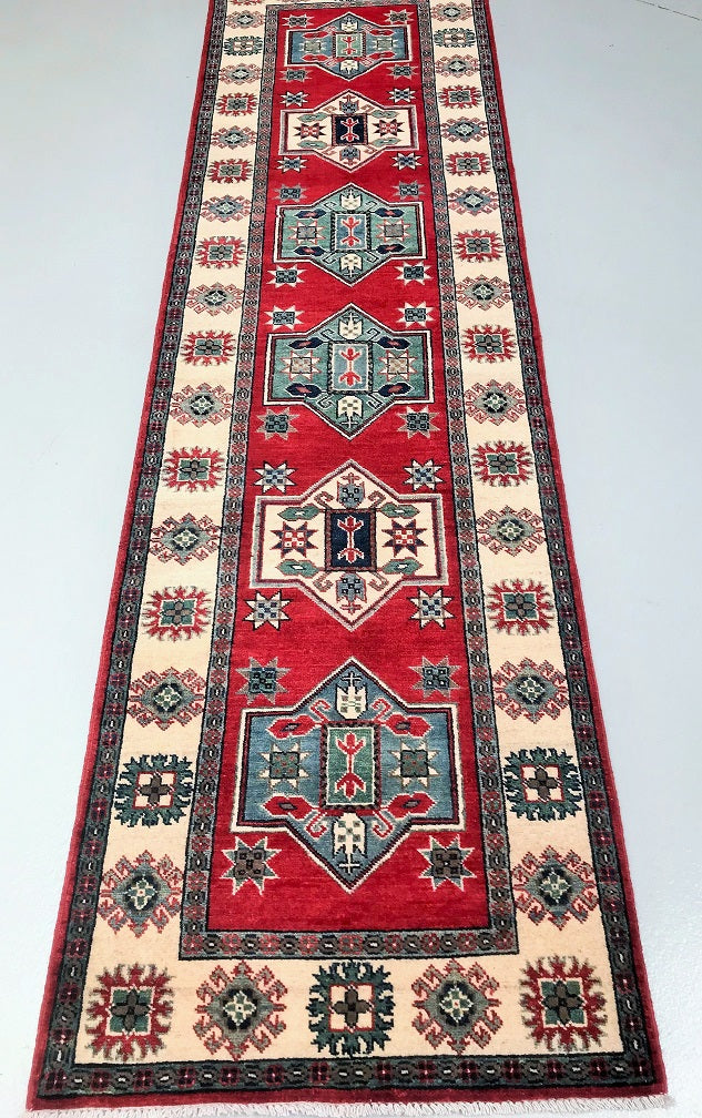 Australia Wide Free Shipping Offered! Certified Handmade Afghan Hall Runner 288x79cm Decorative Handmade Afghan Kazak Hall Runner. Above All It Is Pure Hand Spun Wool Pile On Cotton Base. Gorgeous Red Tone Dyed Using Traditional Methods (Vegetable...
