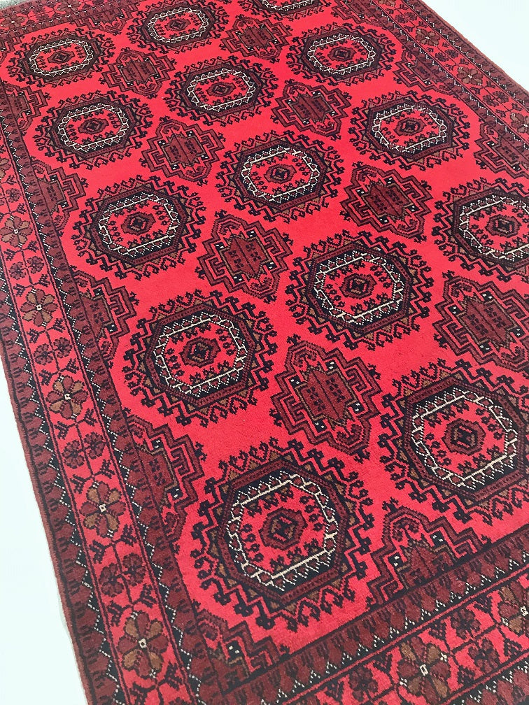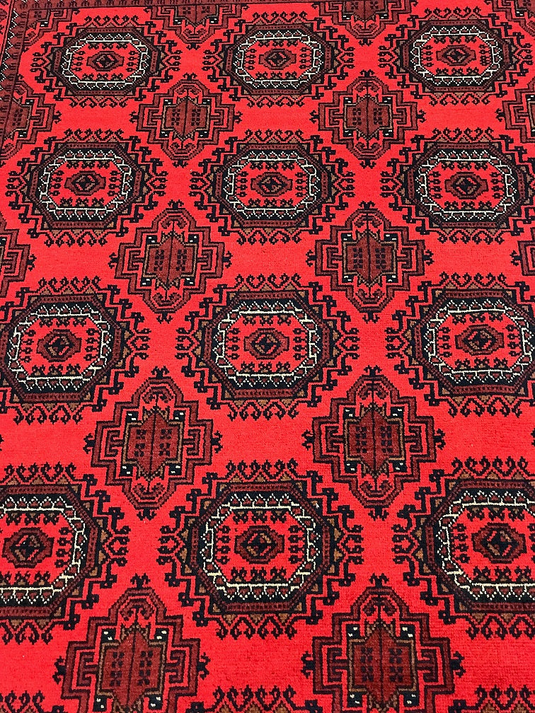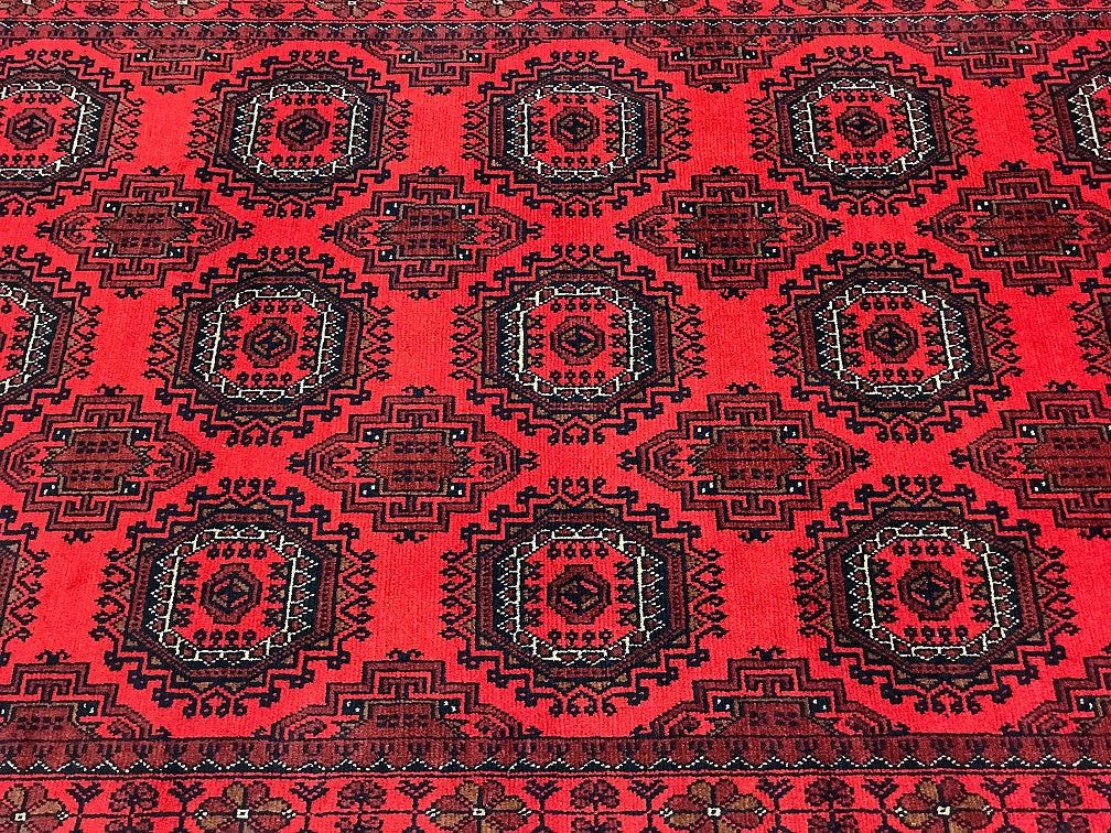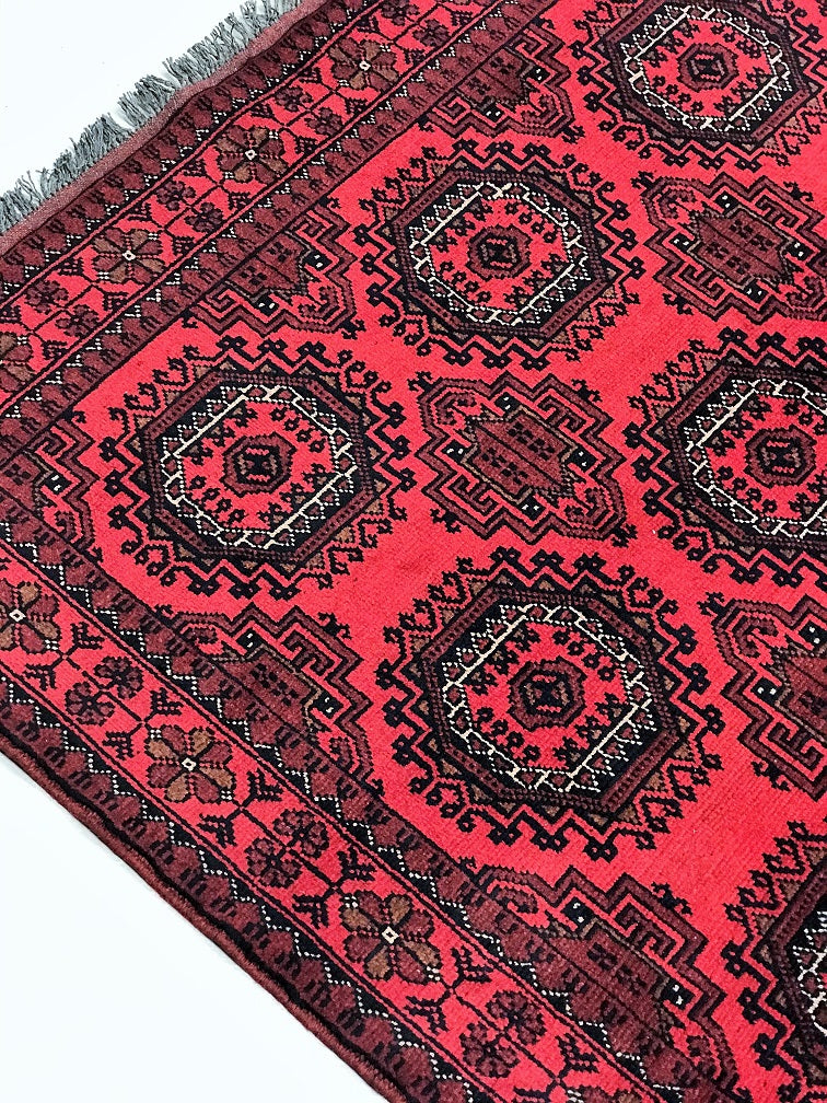 Discounted Coffee Table Size Hand Knotted Tribal Afghan Khal Rug. Above All This Can Be Used As A Floor Rug Or A Wide Hallway Runner. It Has A Pure Hand Spun Wool Pile On Wool Base. It Also Has A Burnt Terracotta/Red Tone Dyed Using Traditional Methods. This Rug Would Look Fantastic On Wooden Floor Board.