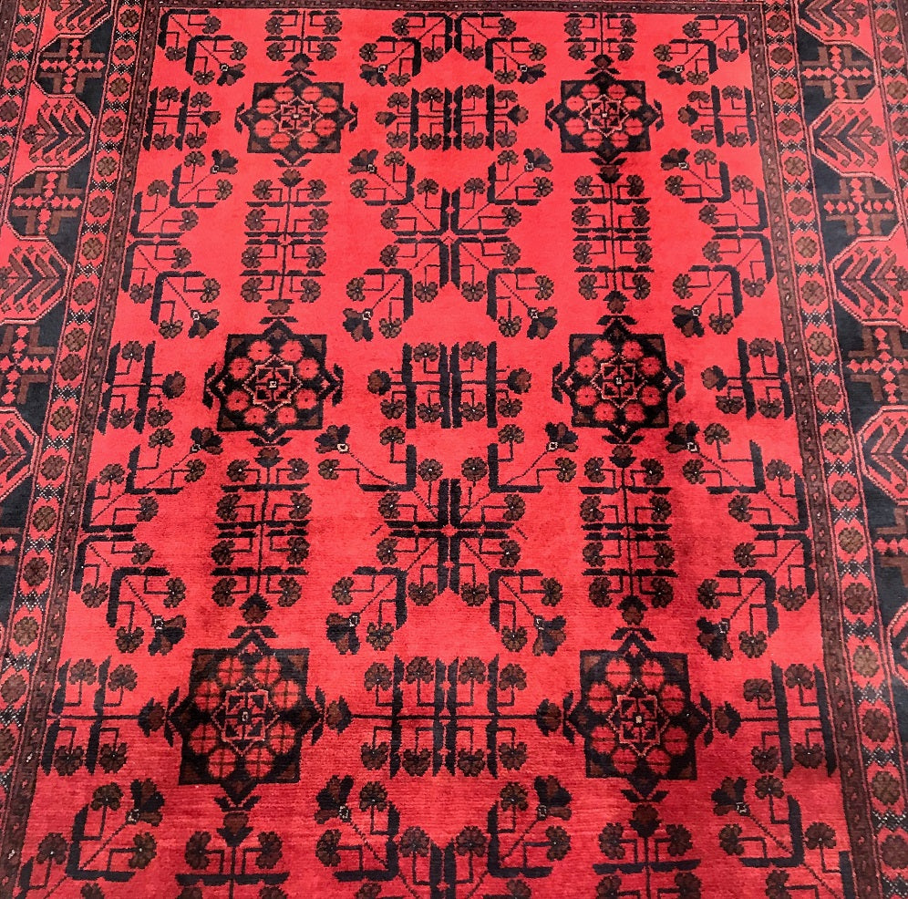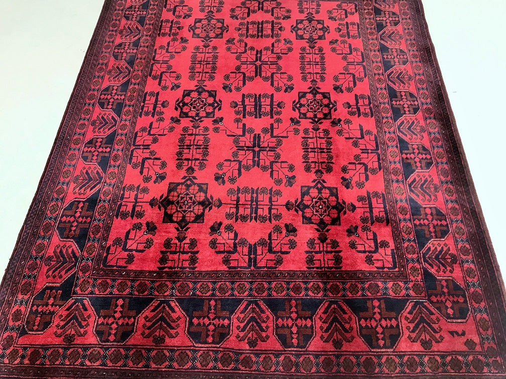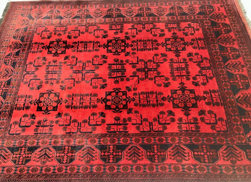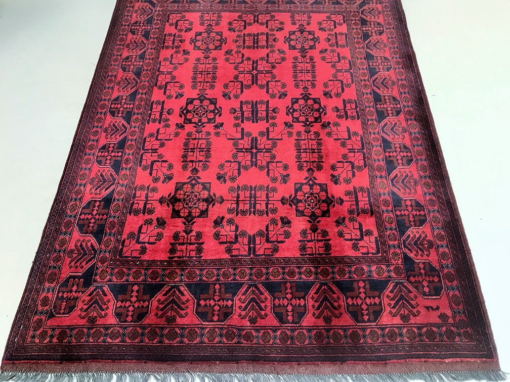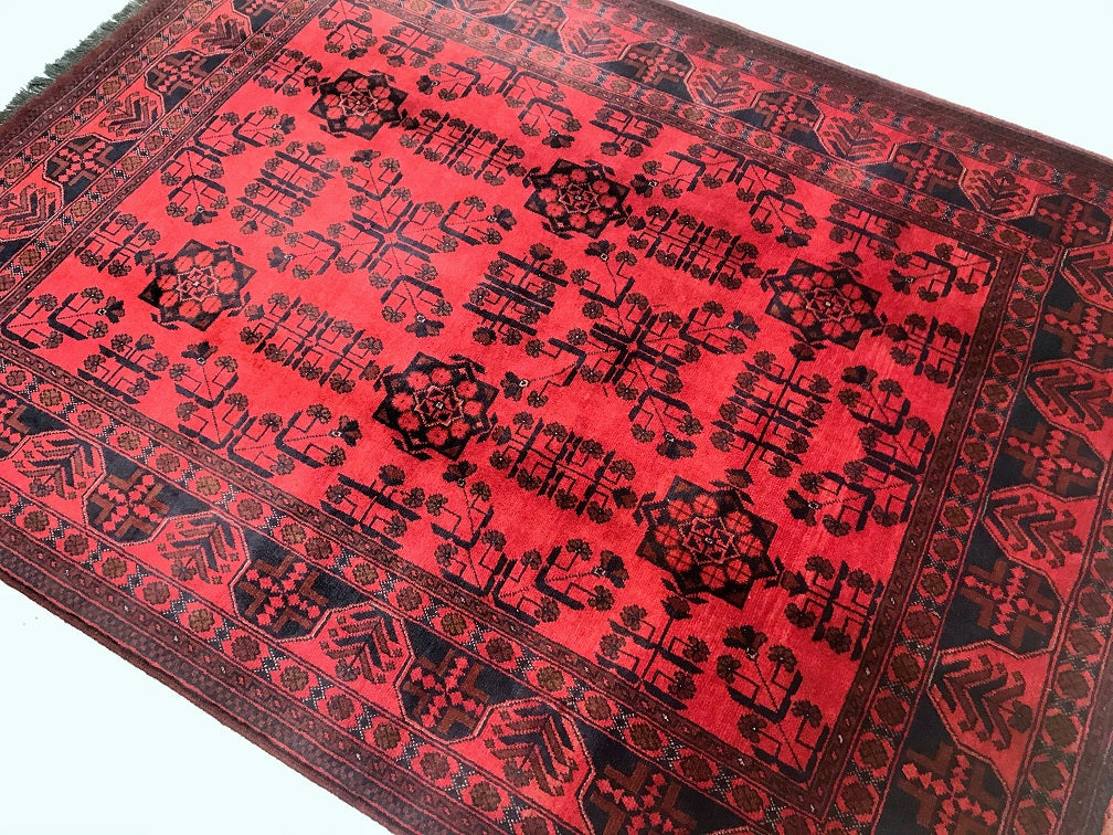 Certified Hand Knotted Afghan Rug 198x151cm