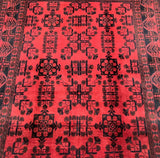 Coffee Table Size Hand Knotted Nomadic Afghan Khal Mohammadi Rug. Above All It Has A Pure Hand Spun Wool Pile On Wool Base. It Also Has A Deep Burgundy Tone With A Touch Of Green Dyed Using Traditional Methods.