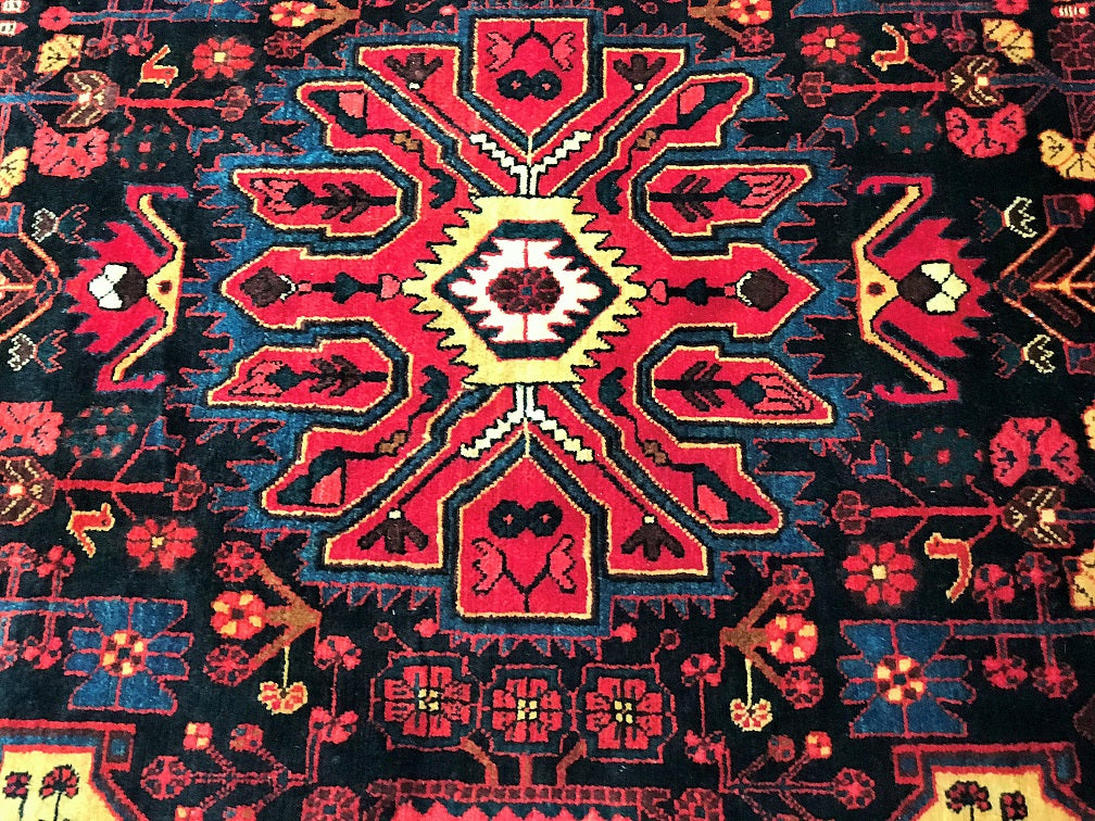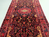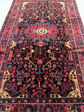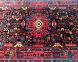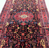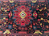 Gorgeous Full Room Size Hand Knotted Persian Nahavand Rug. Above All It Is Hard To Find Tribal Design Hand Made In Larger Sizes. Pure Hand Spun Wool Pile On Cotton Base. It Also Has A Deep Indigo Blue Background Dyed Using Traditional Methods.