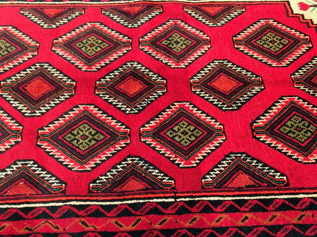 Collectible Coffee Table Size Hand Knotted Rug Which Also Can Be Used As A Runner. It Has A Pure Hand Spun Wool Pile On Cotton Base. Red and Beige Tone Dyed Using Traditional Methods.