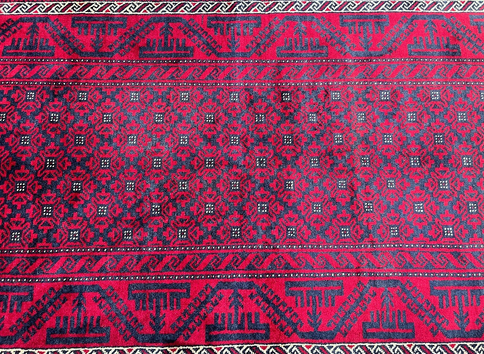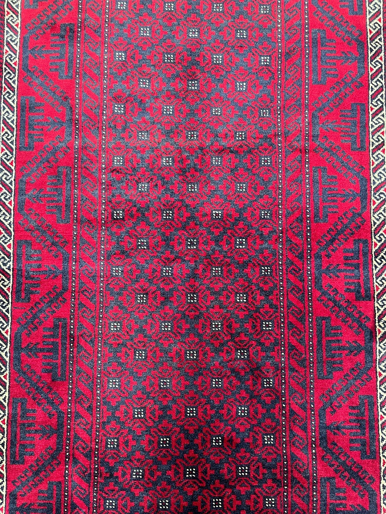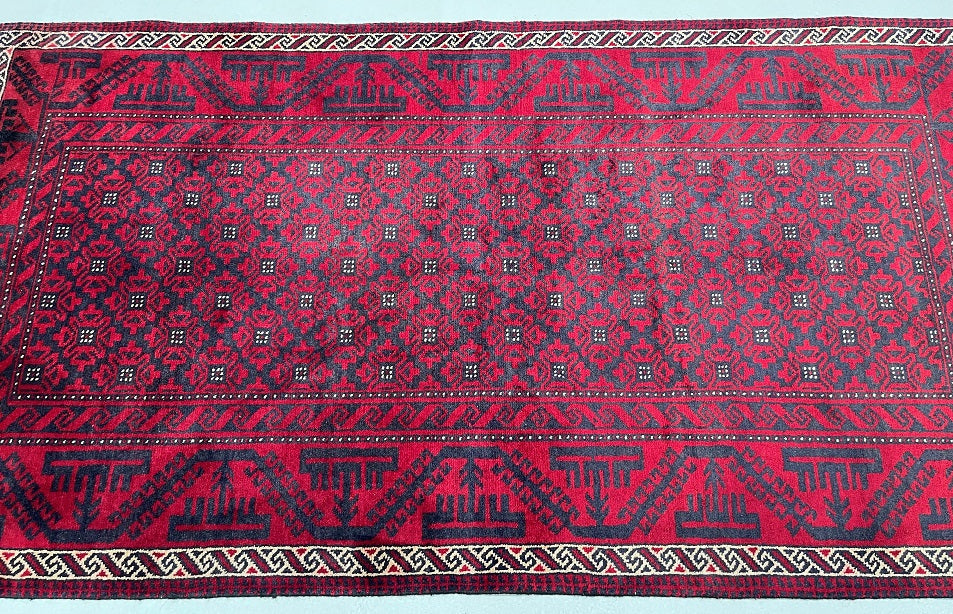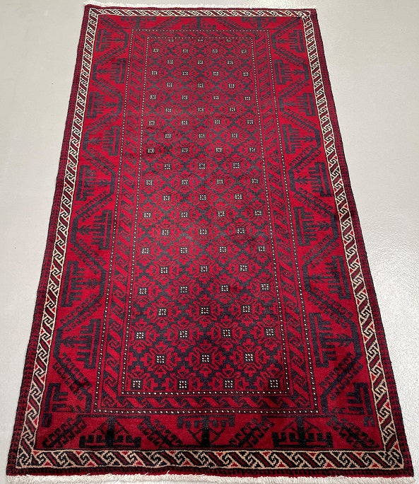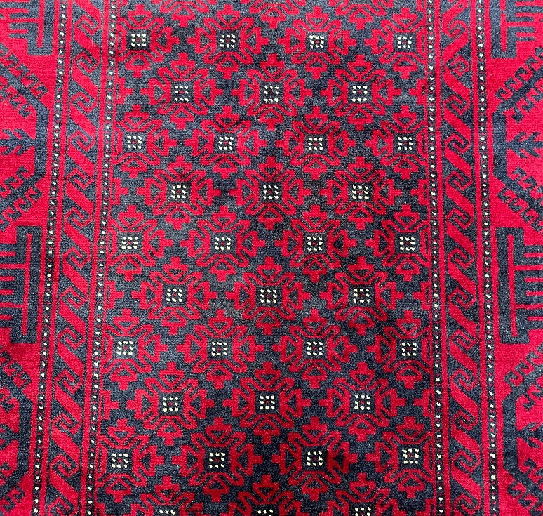 Genuine Handmade Tribal Persian Balouchi Rug. Above All It Has Pure Hand Spun Wool Pile On Wool Base. Maroon Red, Black And Beige Tones Dyed Using Traditional Methods.