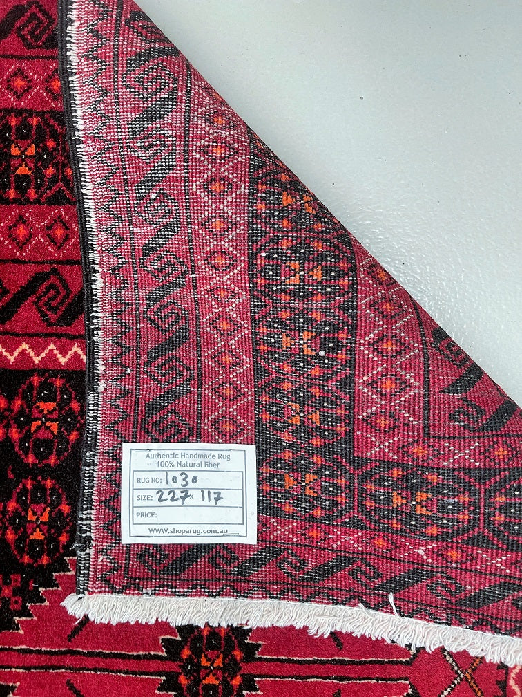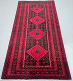 Durable Authentic Handmade Tribal Persian Baluchi Rug. Above All It Has Pure Hand Spun Wool Pile On Cotton Base. Deep Red, Black, Beige And Orange Tones Dyed Using Traditional Methods.