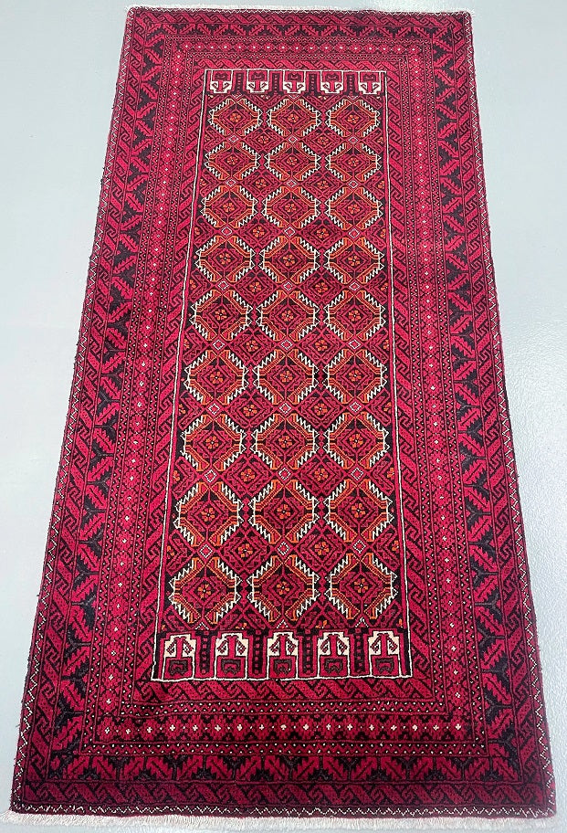 Hard Wearing Coffee Table Size Authentic Vintage Handmade Persian Balouchi Rug Which Also Can Be Used As A Runner. It Has A Pure Hand Spun Wool Pile On Cotton Base. Red, Beige, Orange And Black Tone Dyed Using Traditional Methods.