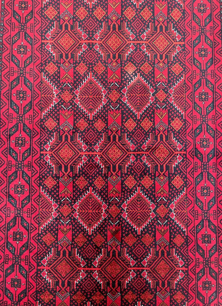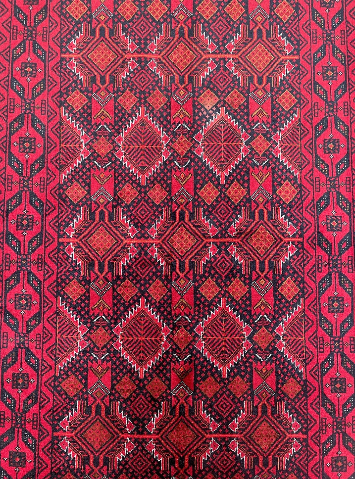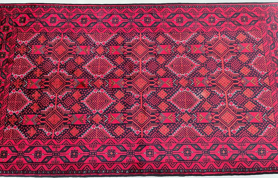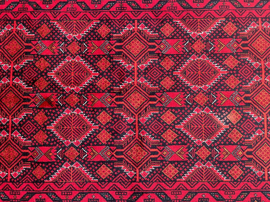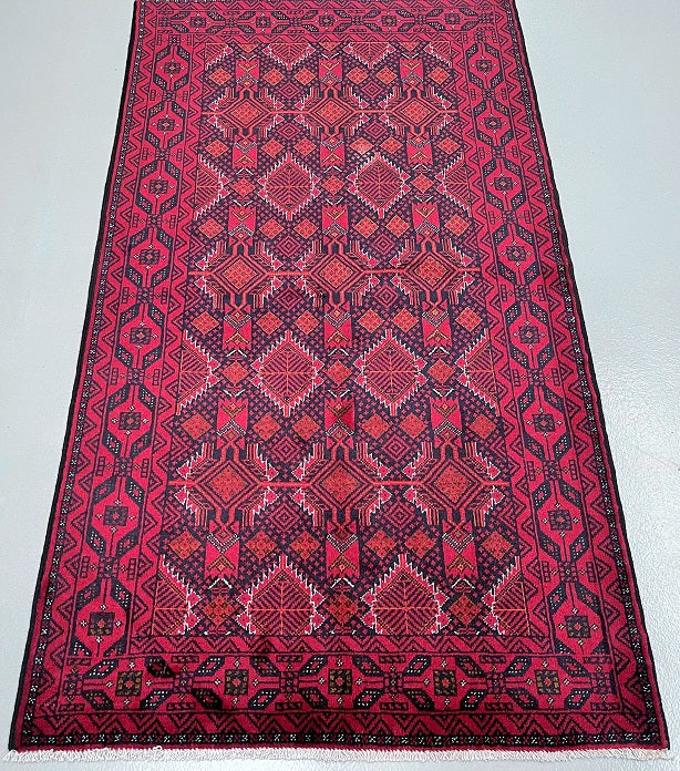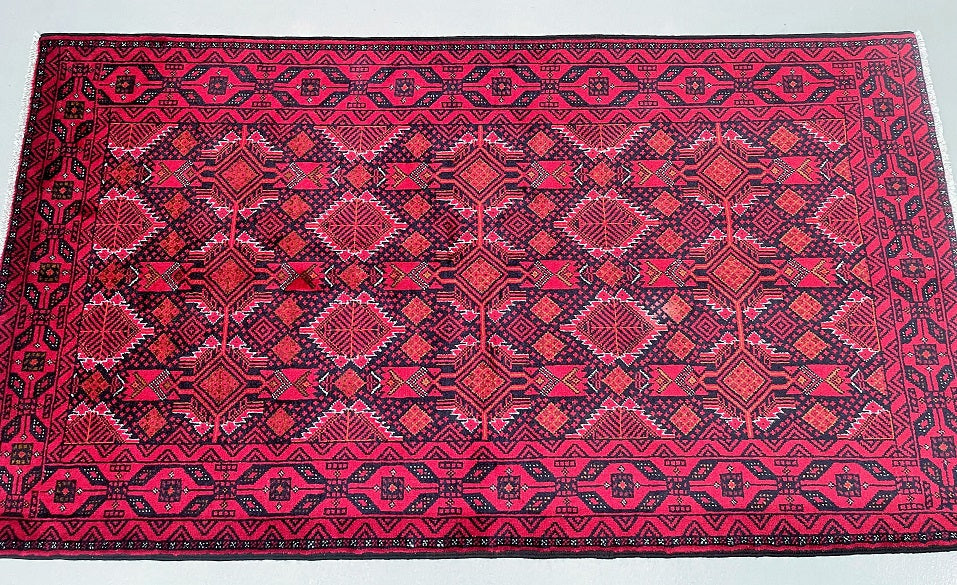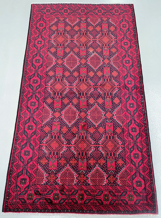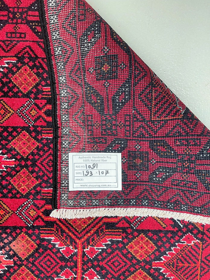 Collectable Coffee Table Size Genuine Handmade Persian Balouchi Rug Which Also Can Be Used As A Runner. It Has A Pure Hand Spun Wool Pile On Cotton Base. Black, Red, Beige And Orange Tone Dyed Using Traditional Methods.