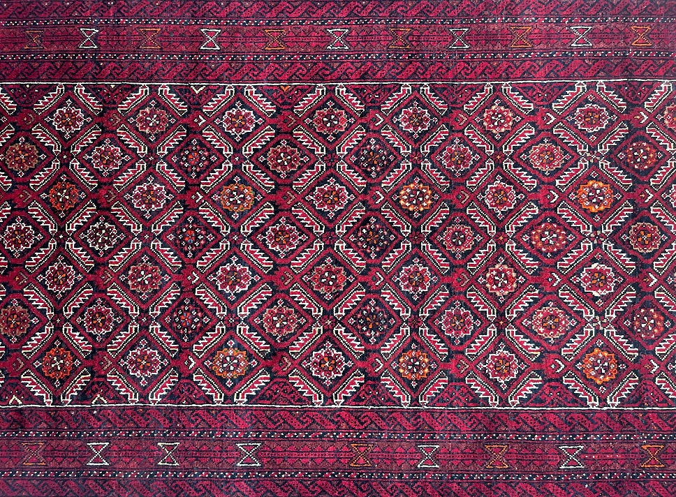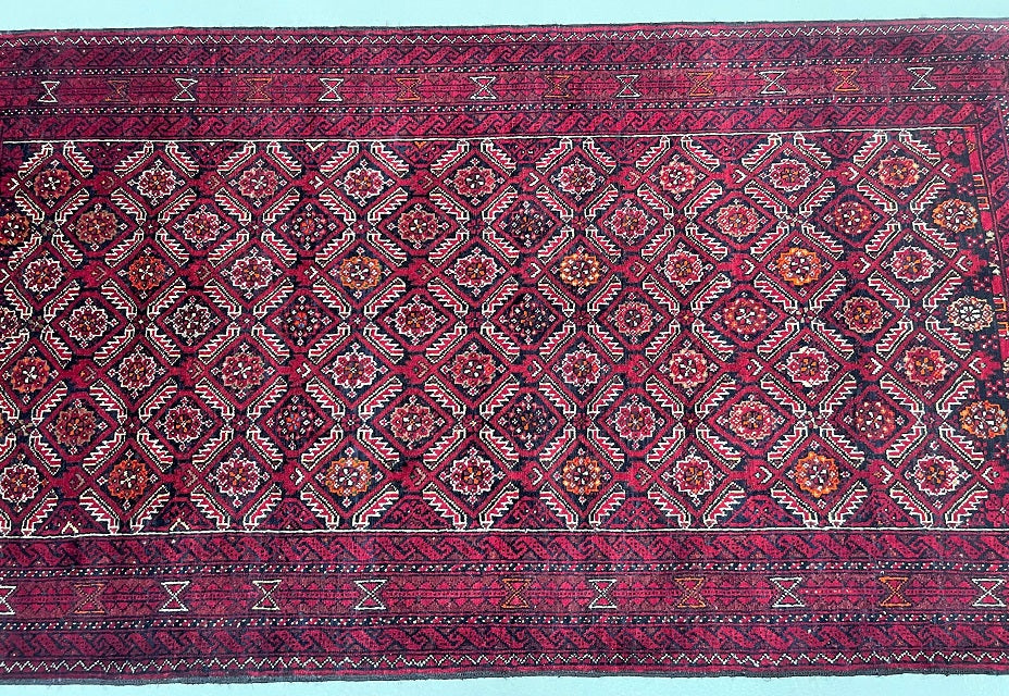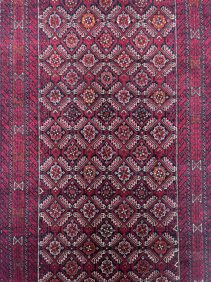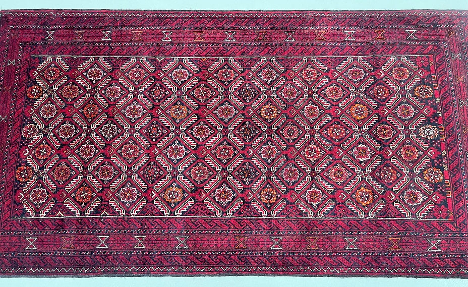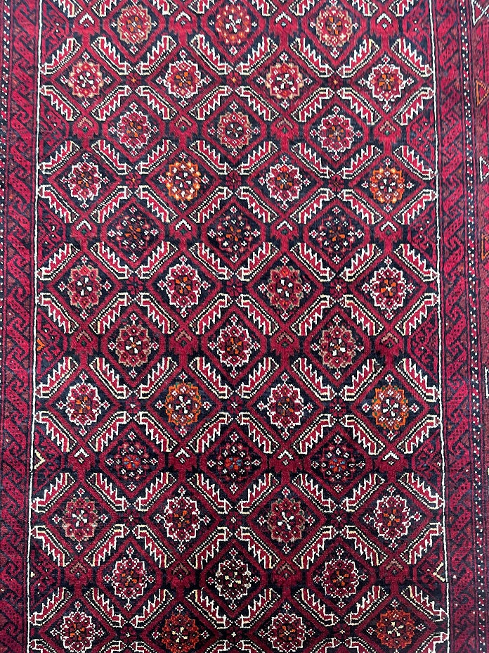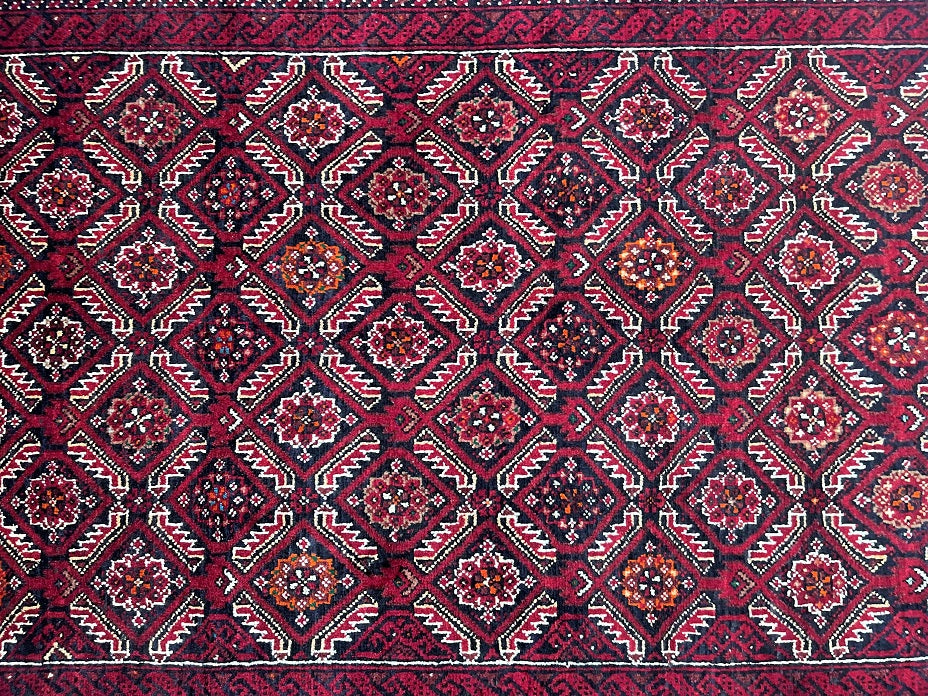Collectable Coffee Table Size Authentic Handmade Persian Balouchi Rug Which Also Can Be Used As A Runner. It Has A Pure Hand Spun Wool Pile On Cotton Base. Black, Beige, Maroon, Orange And Touch Of Brown Tones Dyed Using Traditional Methods.