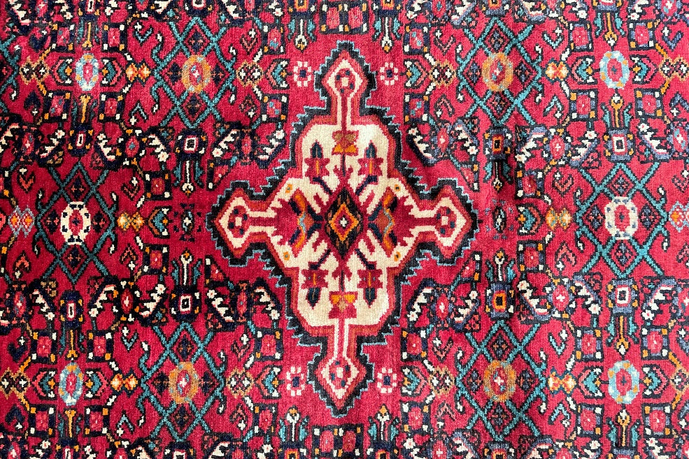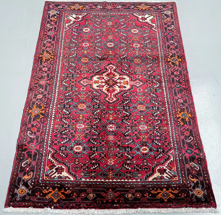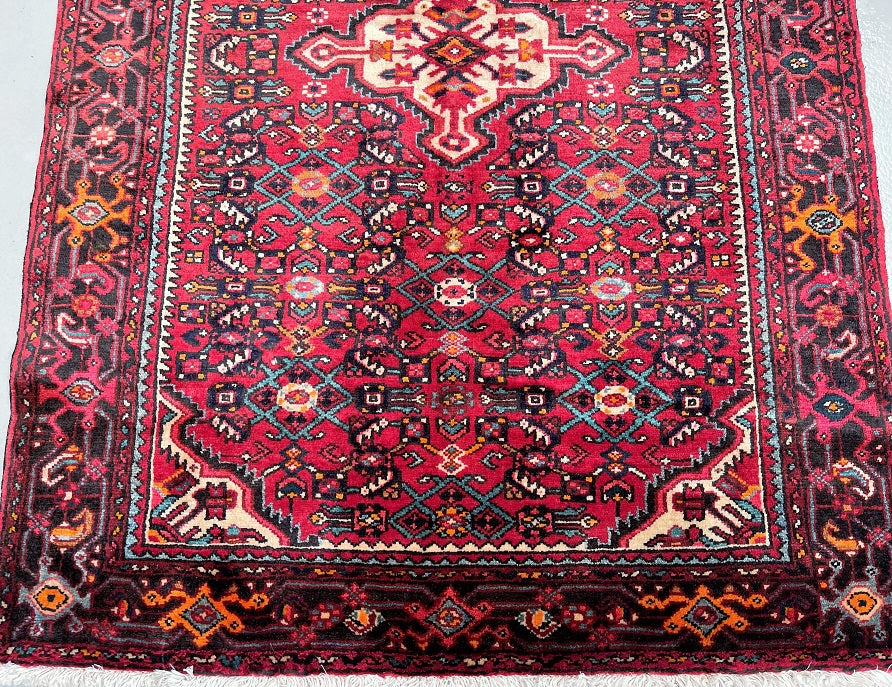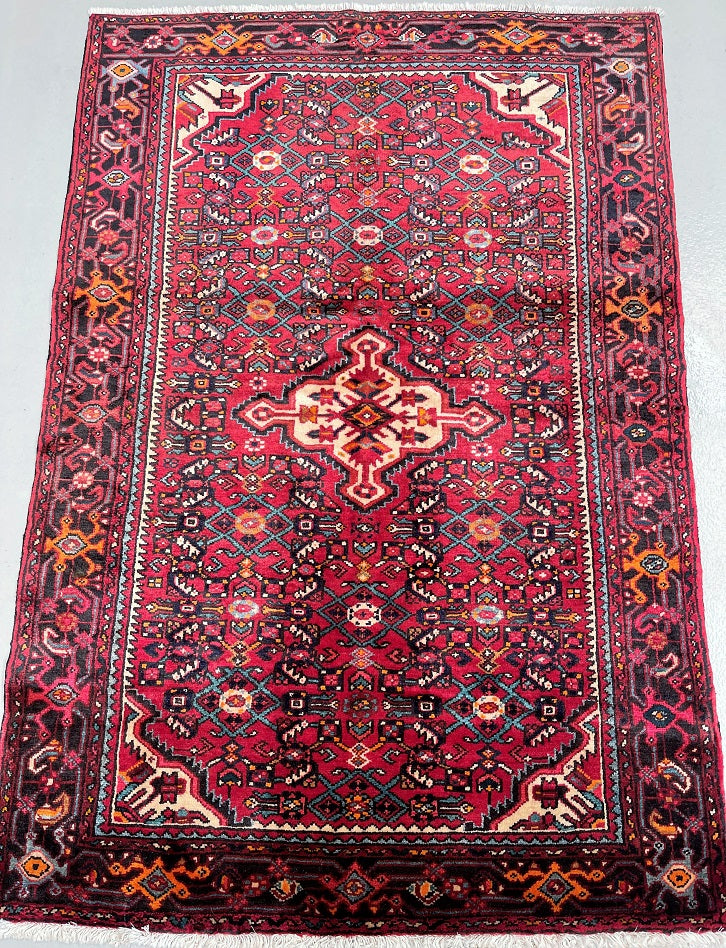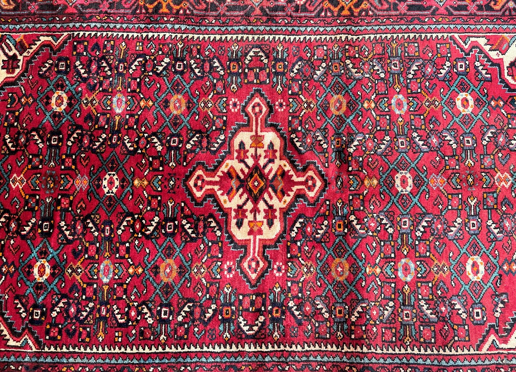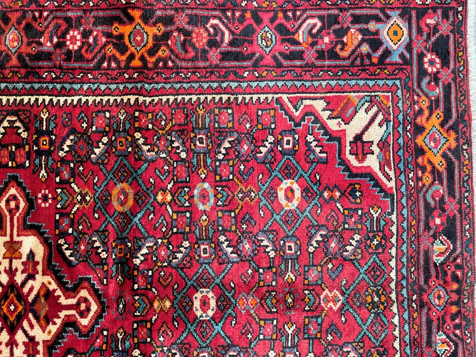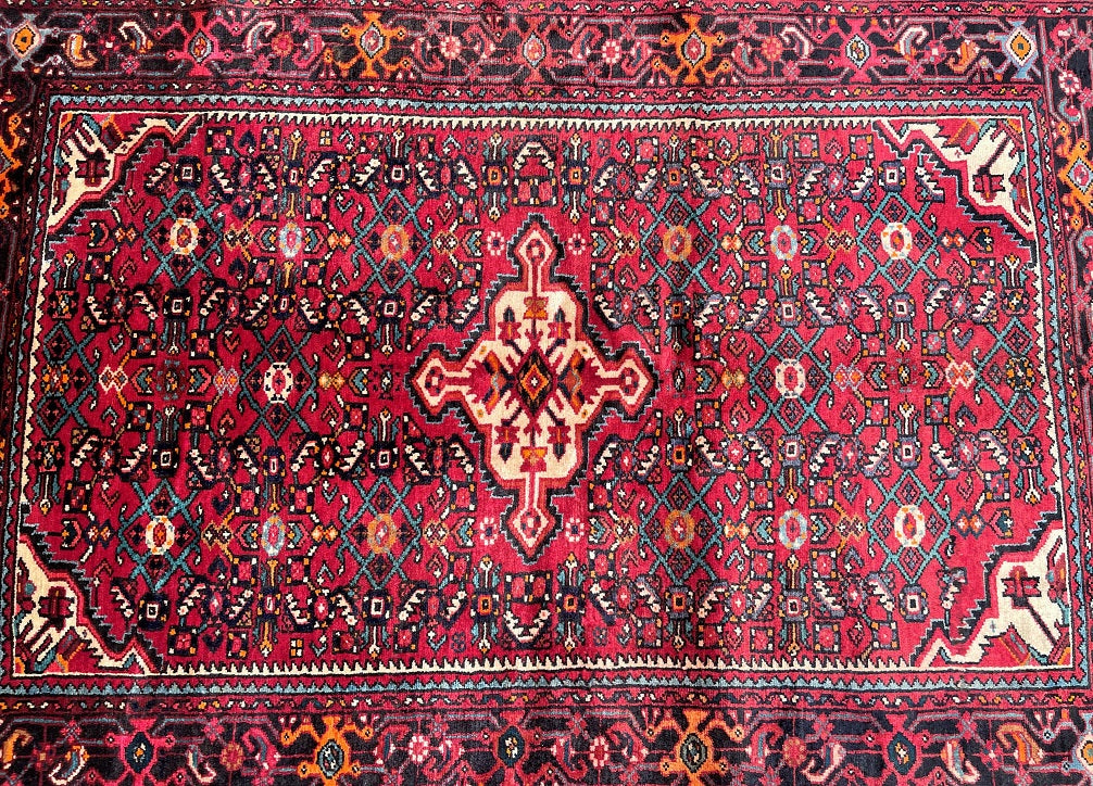 Rare Genuine Handmade Village Persian Enjelas Rug. Above All It Is A Very Hard Wearing Rug. Pure Hand Spun Wool Pile On Cotton Base. It Also Has a Red, Beige, Blue, Orange And Black Tones Dyed Using Traditional Methods.
