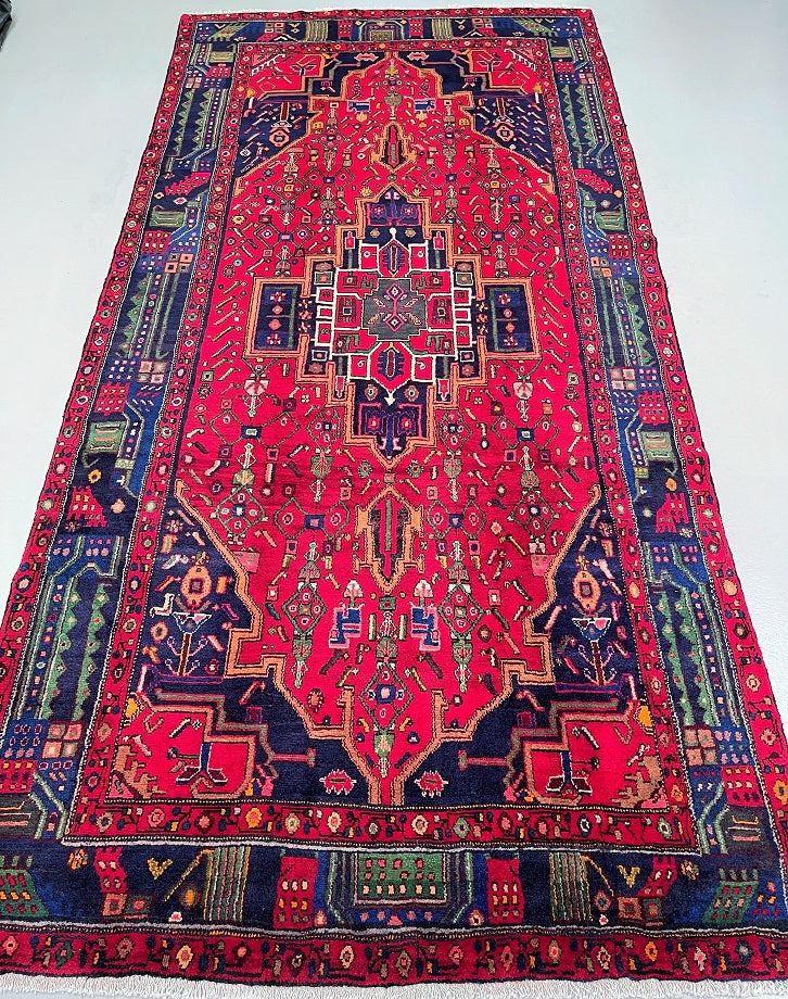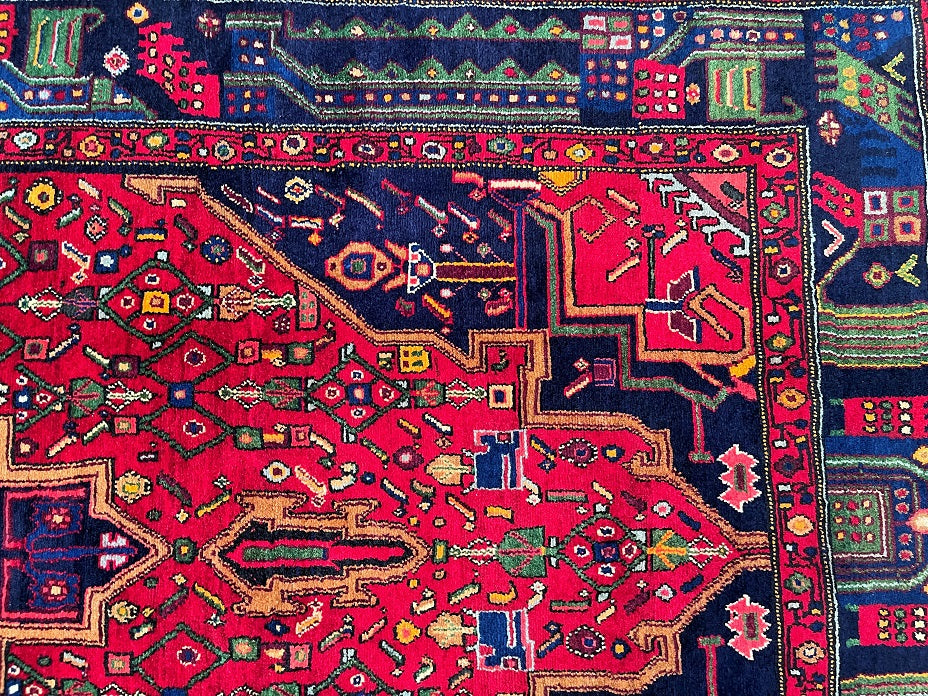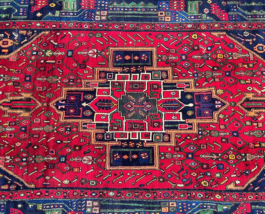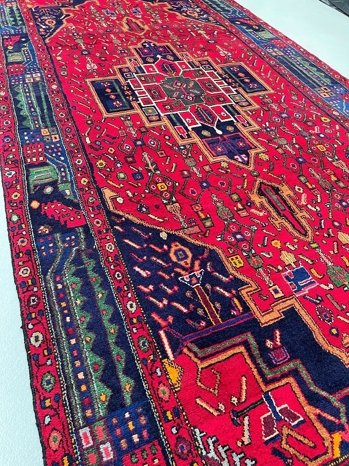Collectible Full Room Size Hand Knotted Persian Koliai Rug. Above All It Is A Versatile Size Which Can Also Be Used As A Wide Runner. Pure Hand Spun Wool Pile On Cotton Base. Red, Indigo Blue, Green, Beige, Gold And Orange Tones Dyed Using Traditional Methods.