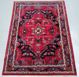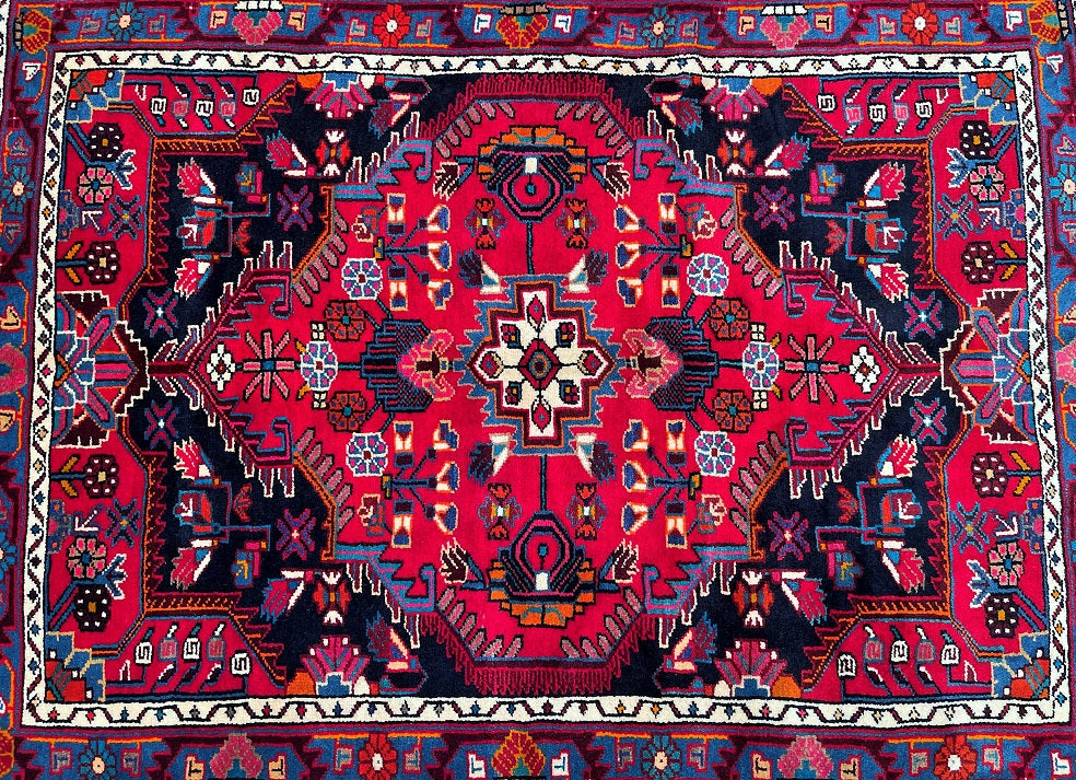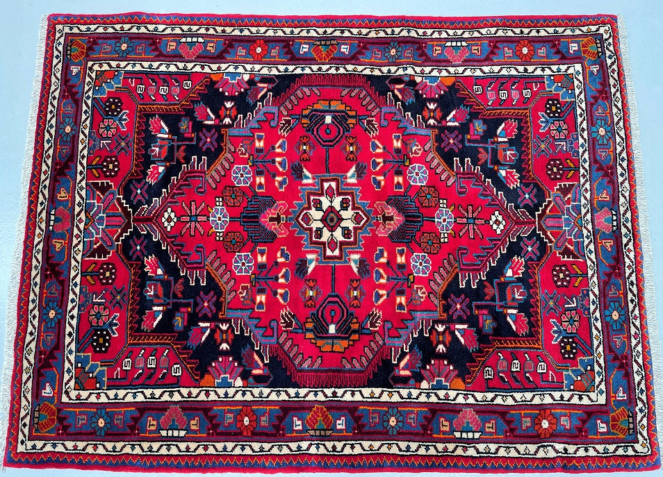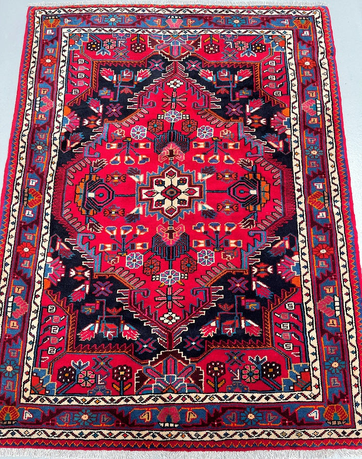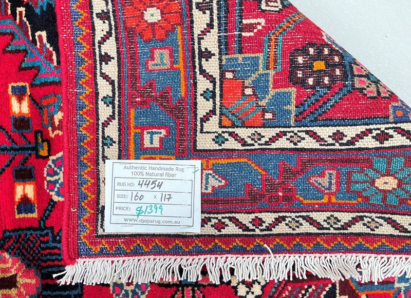 Hand-woven in the Hamadan region of Central West Persia, this rug measures 160 x 117 cm and holds a gallery replacement value of $2,990