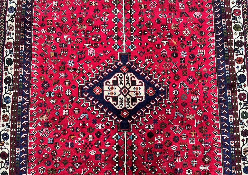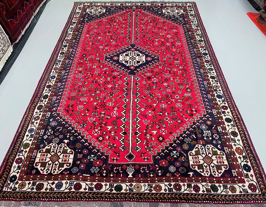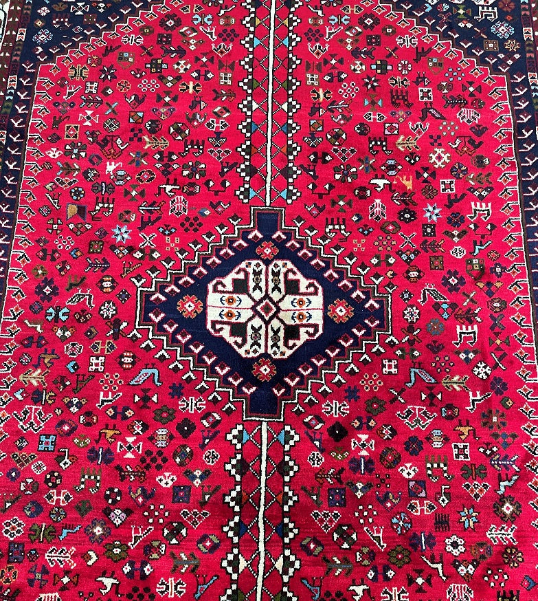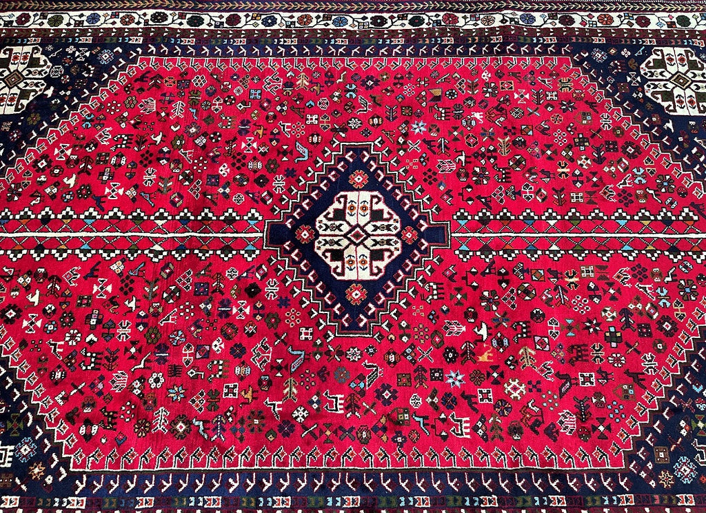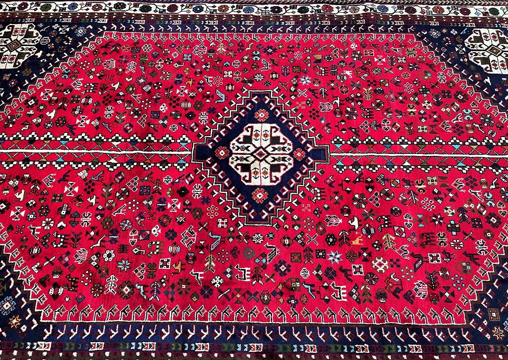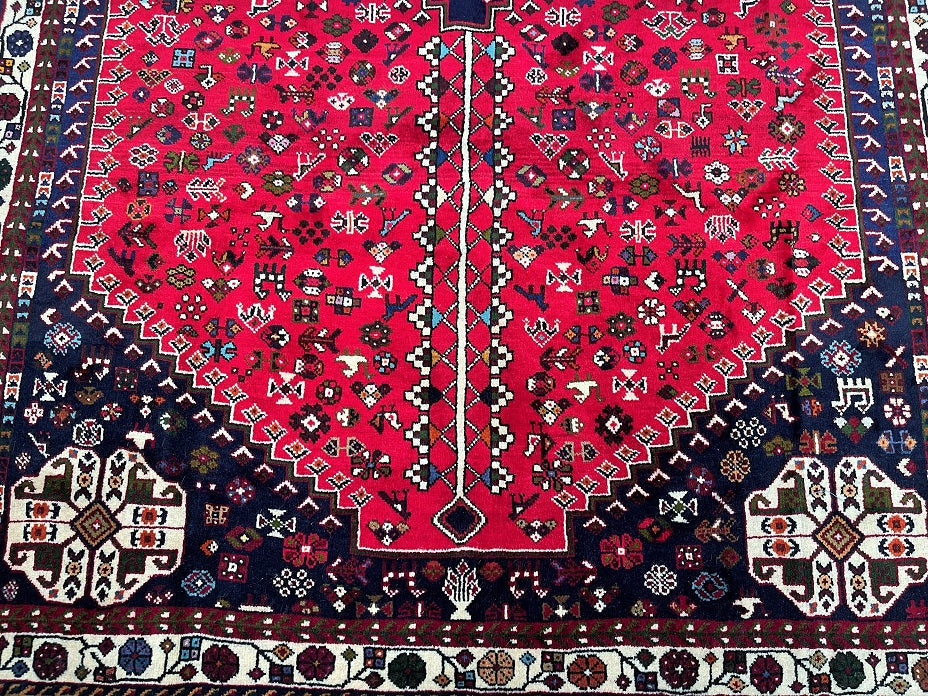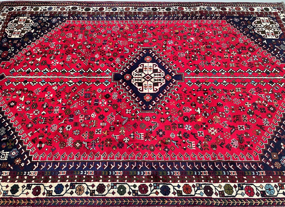 Collectible Full Room Size Hand Knotted Persian Shiraz Rug. Above All It Is Hard To Find This Quality Original Handmade From This Region. Pure Hand Spun Wool Pile On Wool Base. Red, Indigo Blue, Beige, Green, Brown and Black Tone sDyed Using Traditional Methods.