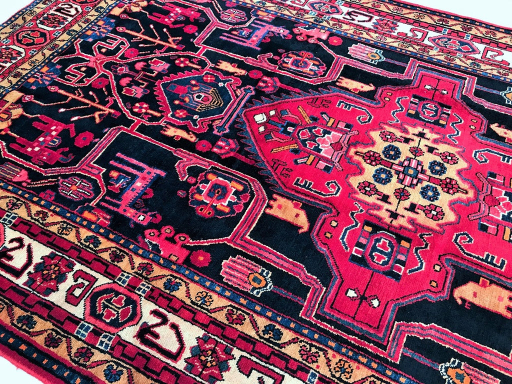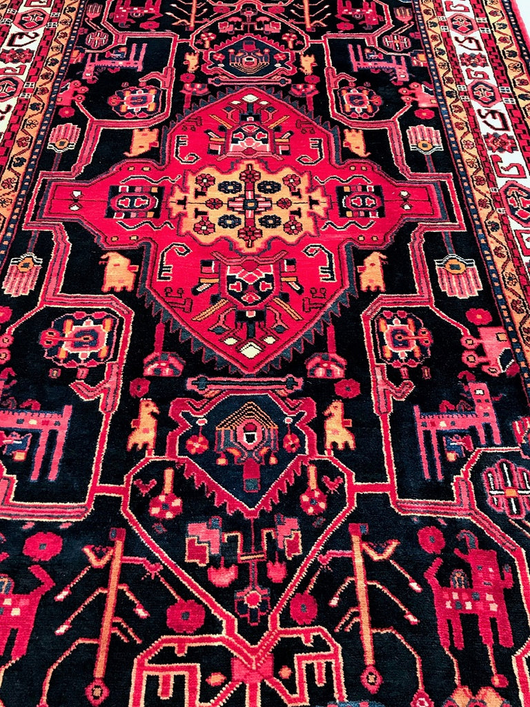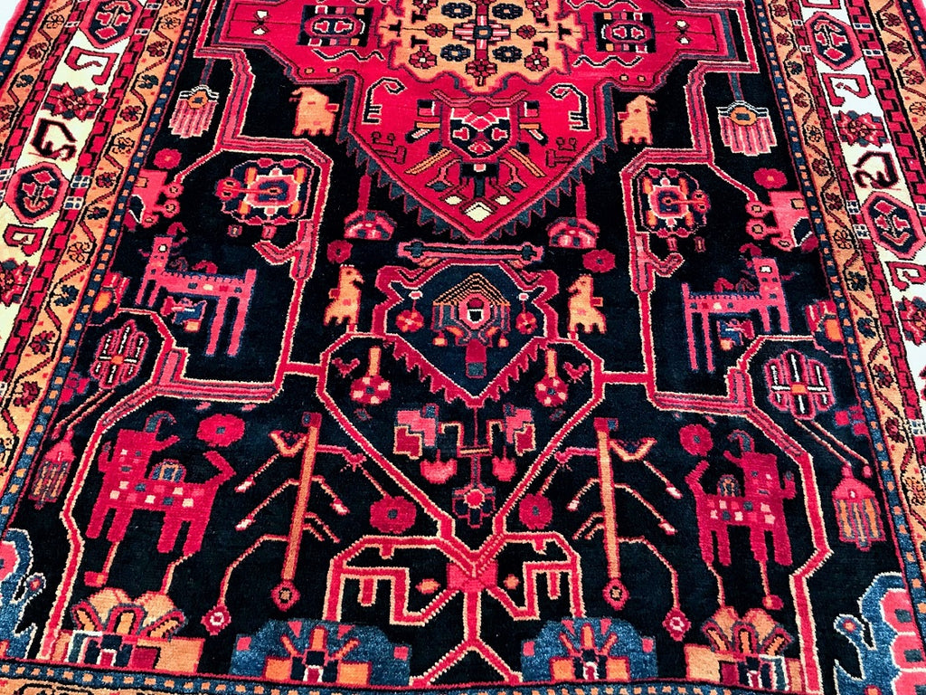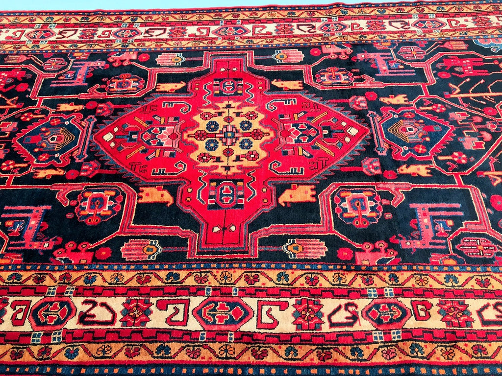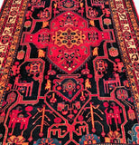 Full Room Size Hand Knotted Tribal Tuserkan Rug. Above All It Is Hard To Find This Quality Hand Made Tribal Pieces. Pure Hand Spun Wool Pile On Cotton Base. Dark Background Dyed Using Traditional Methods.