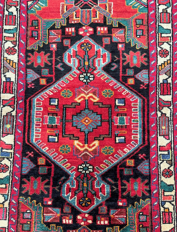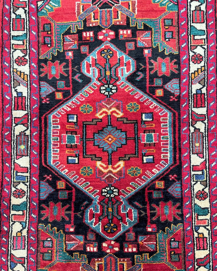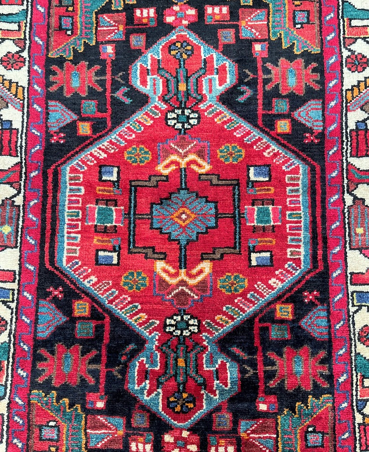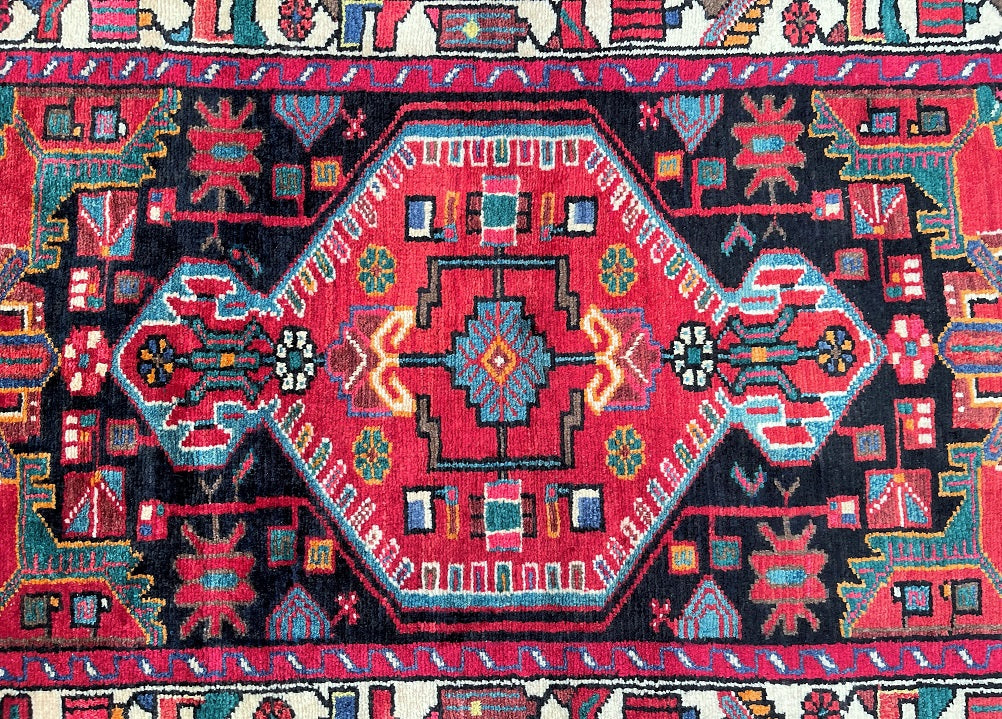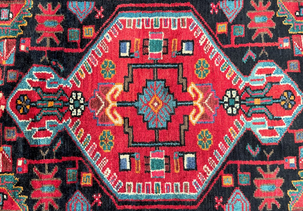 Coffee Table Size Genuine Handmade Persian Tuserkan Rug. Above All It Has A Pure Hand Spun Wool Pile On Cotton Base. It Also Has A Red, Blue, Pink, Beige, Green, Brown And Orange Tone Dyed Using Traditional Methods.