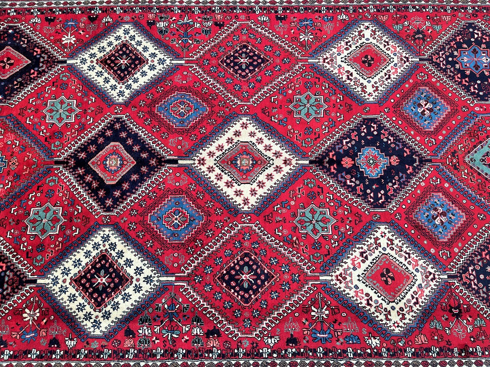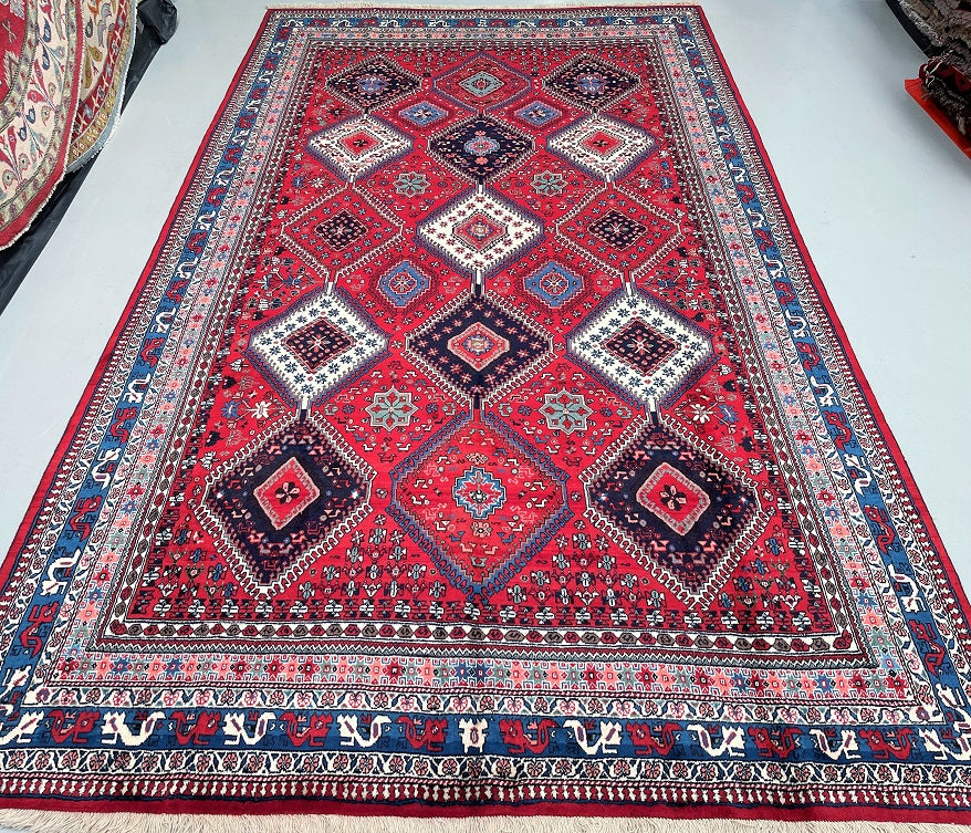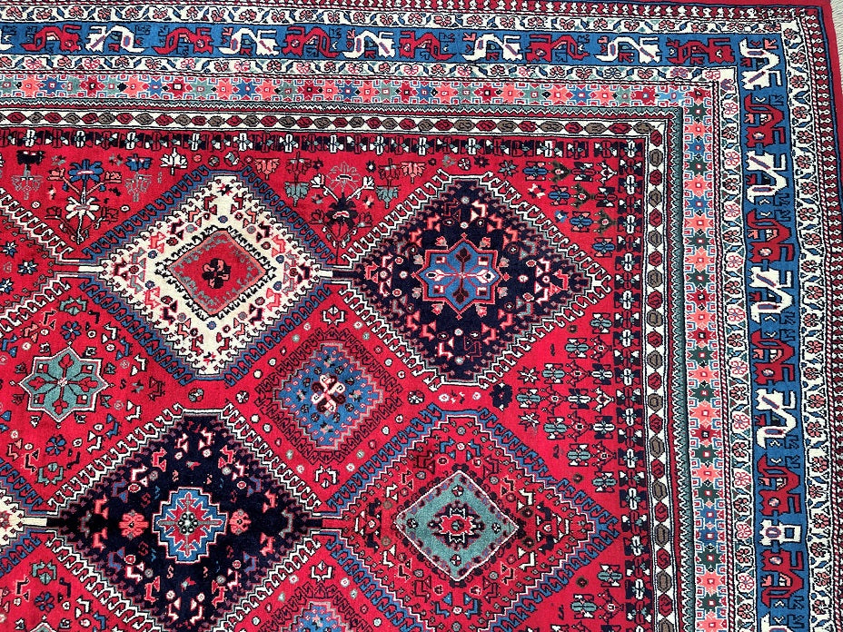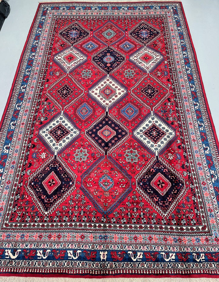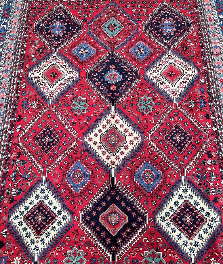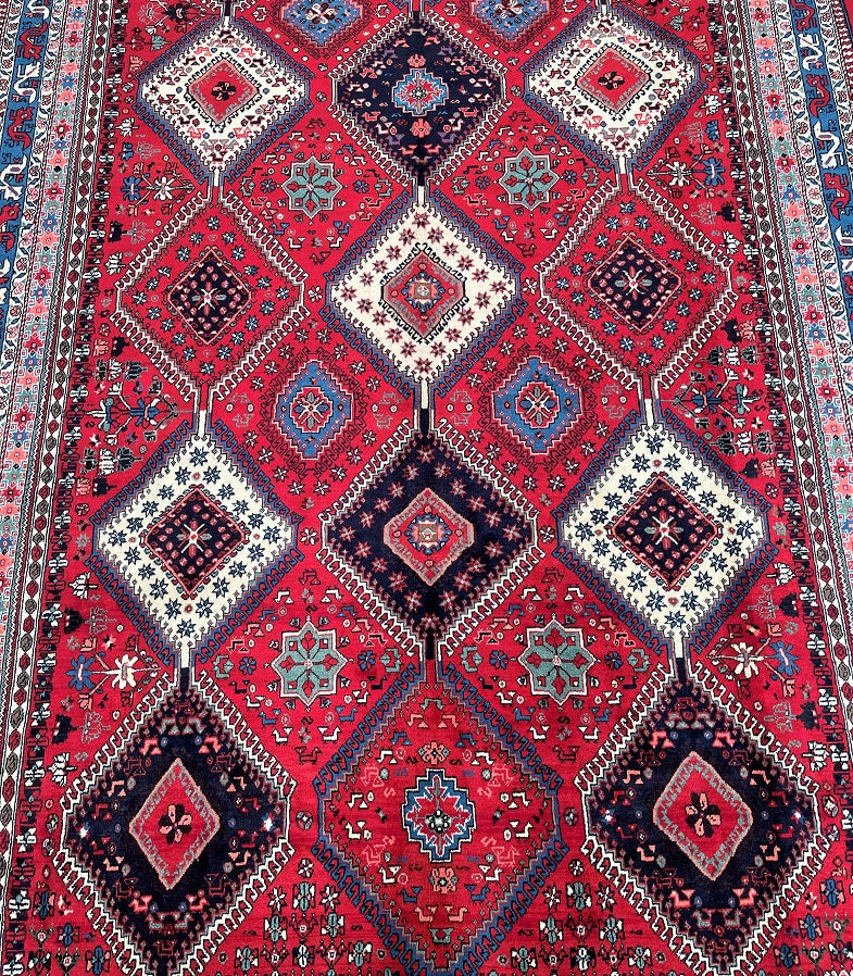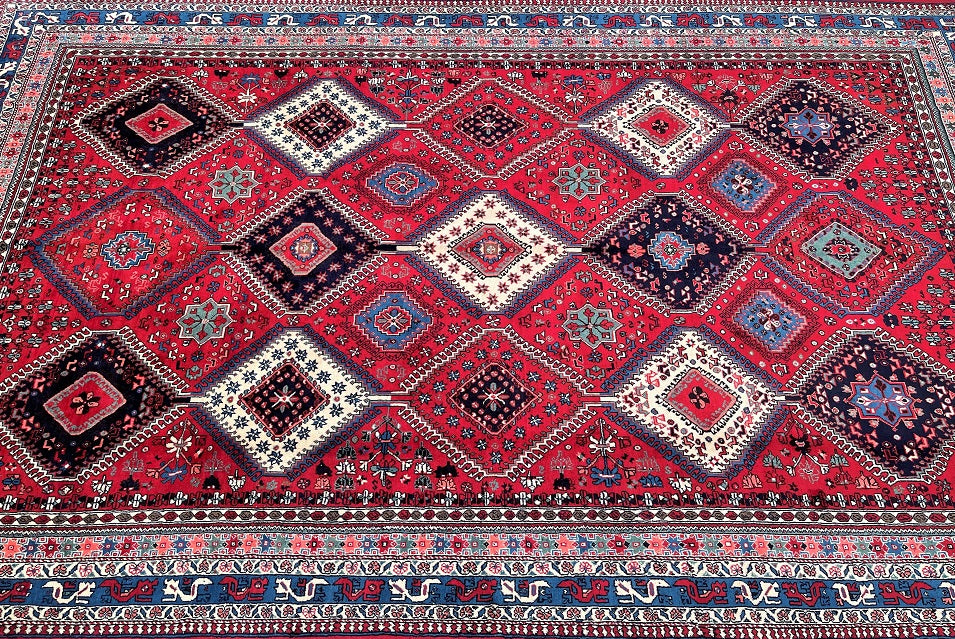 Rare Large Room Size Hand Knotted Persian Yalameh Rug. Above All It Is Hard To Find This Yalameh Rugs In Full Room Sizes. It Also Has A Hand Spun Pure Wool Pile On Wool Base. Terracotta, Beige, Blue And Pink Tones Dyed Using Traditional Methods.