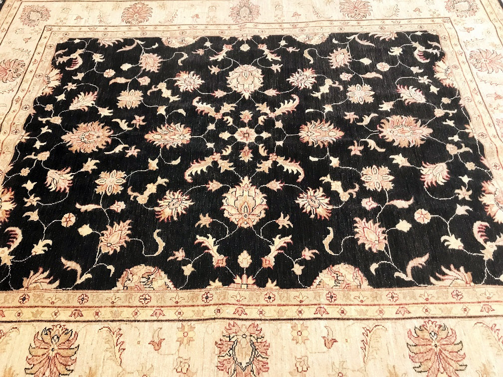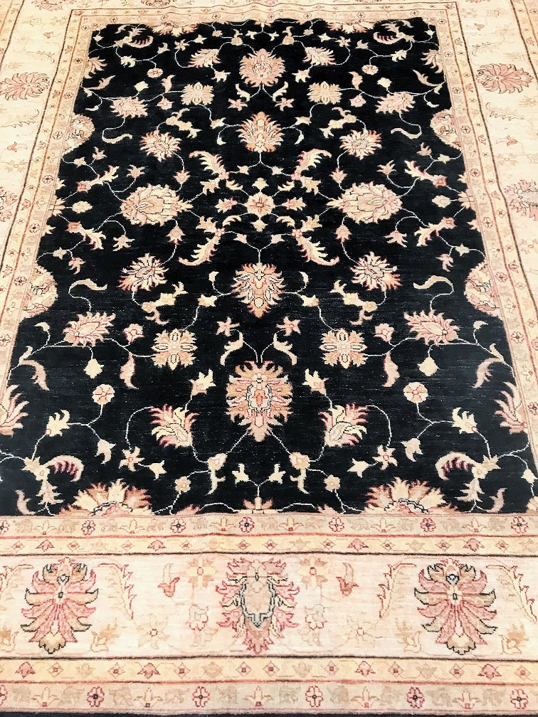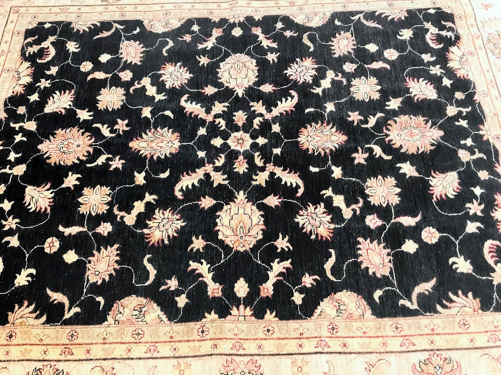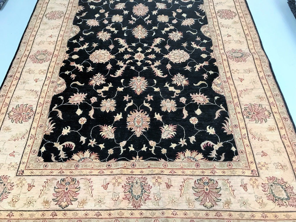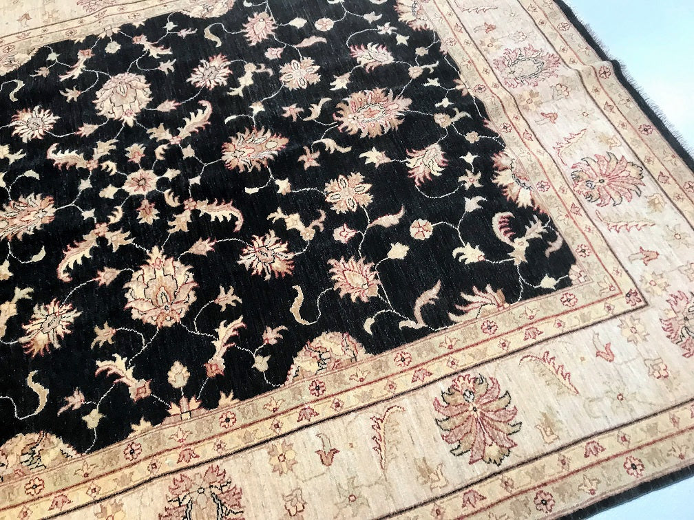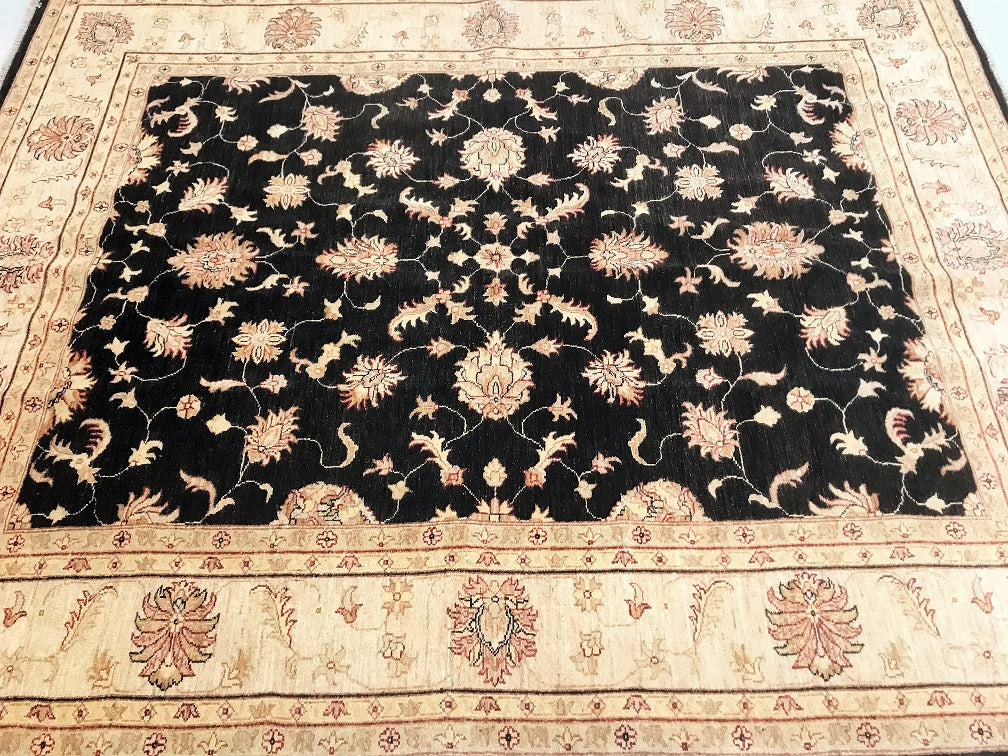 Squarish Room Authentic Hand Knotted Afghan Chobi Rug. Above All It Is Pure Hand Spun Wool Pile On Cotton Base. Vegetable Dyes Black And Gold Tone Dyed Using Traditional Methods. Last Of True Woven Nomadic Art.