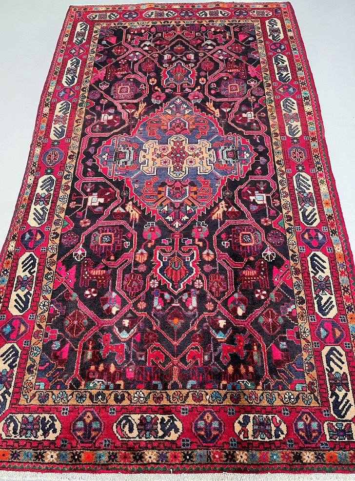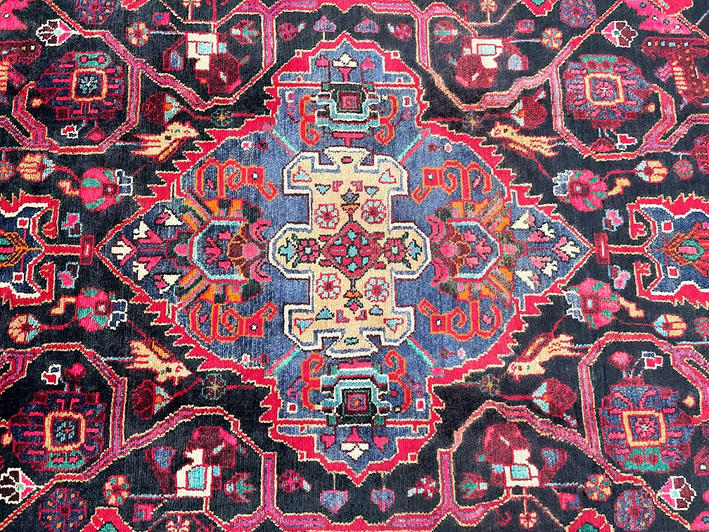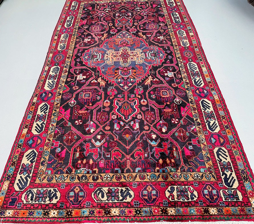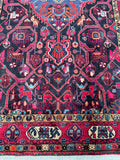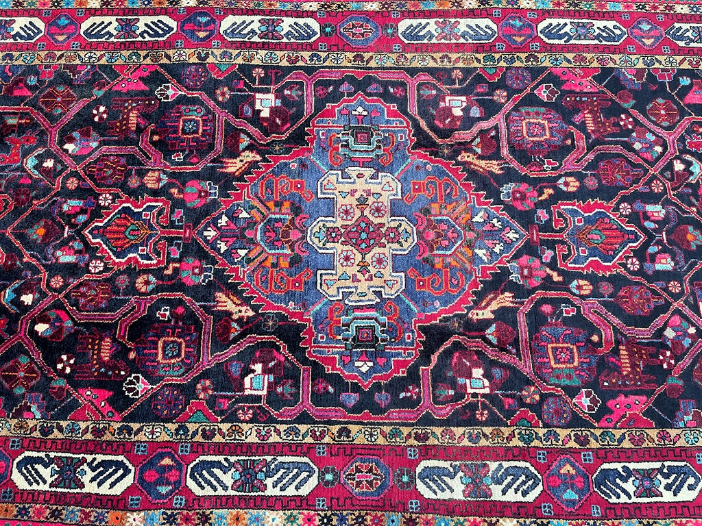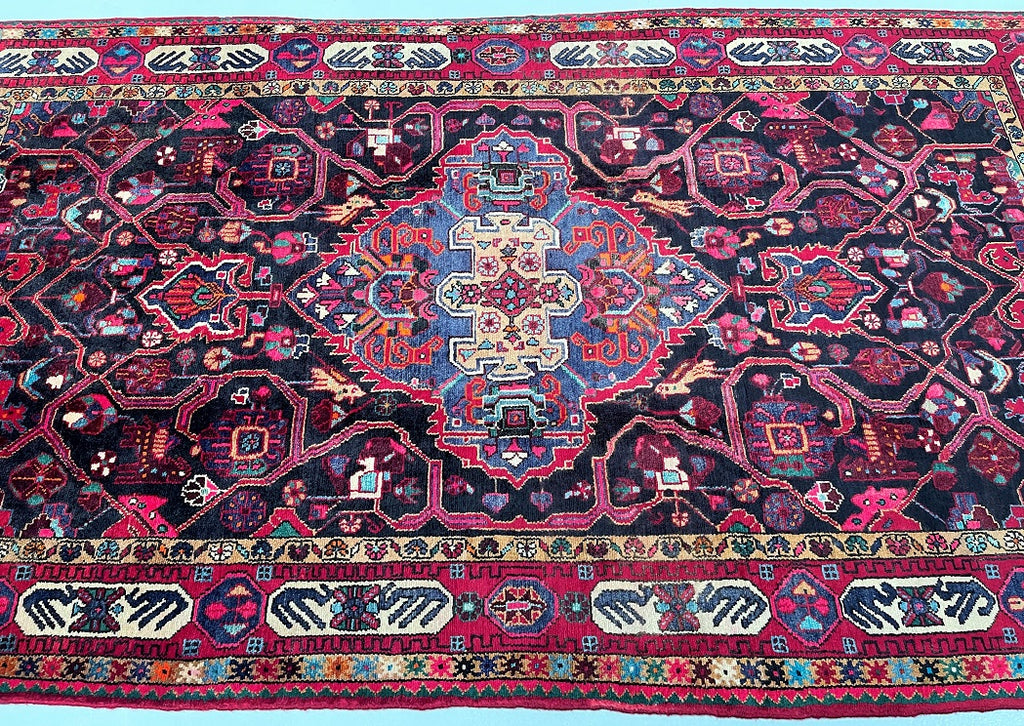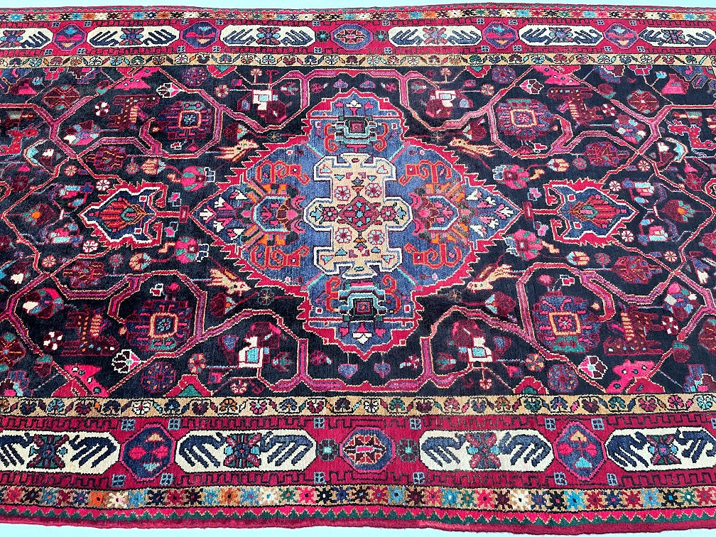 Gorgeous Room Size Hand Knotted Village Tuserkan Persian Rug. Above All It Is Collectible Item, True Nomadic Art. Hand Spun Wool Pile On Cotton Base. It Also Has A Deep Indigo Blue and Maroon Tone Dyed Using Traditional Methods.