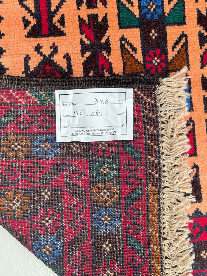 Certified Hand Knotted Afghan Prayer Rug 145x86cm