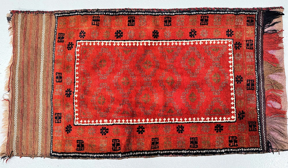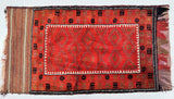 Authentic Handmade Vintage Afghan Mishwani Balouchi Saddle Rug/Pillow Case. Above All It Has The Kilim Backing And Could Be Filled And Used As A Large Cushion, Pillow Or As A Floor Rug. It Also Has A Pure Hand Spun Wool Pile On Wool Base. Rustic Red Tones Tone Dyed Using Traditional Methods.
