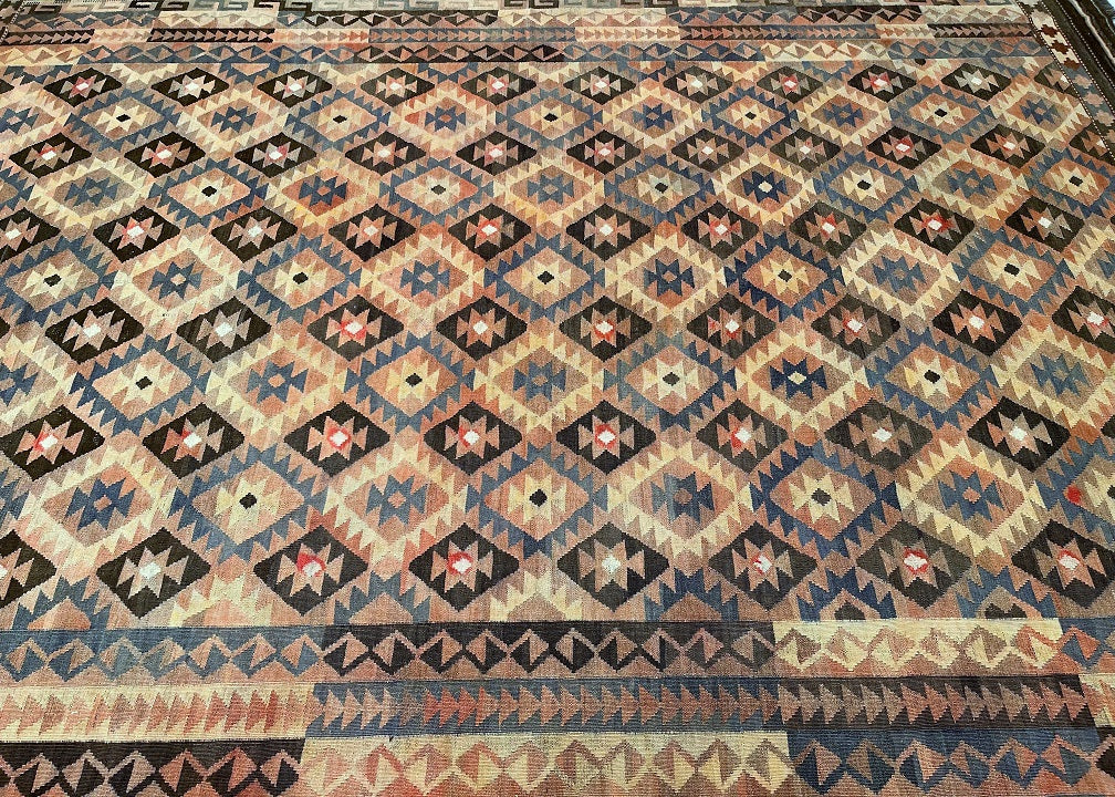 Large Room Size Pure Wool Vintage Afghan Meymaneh Kilim Rug – Circa 1990’s